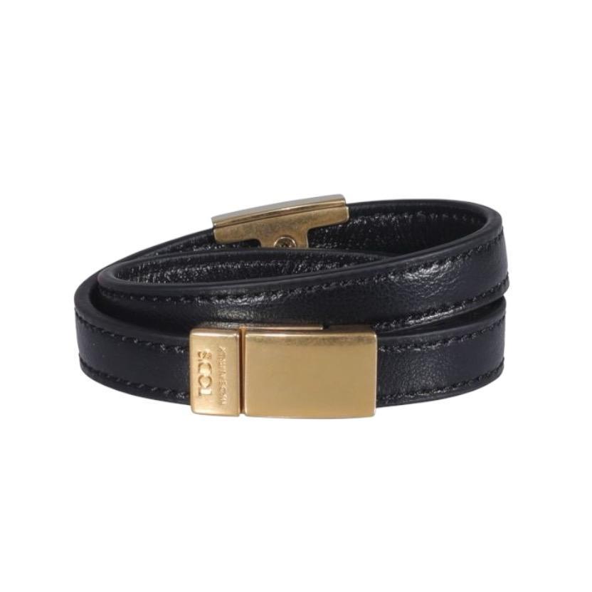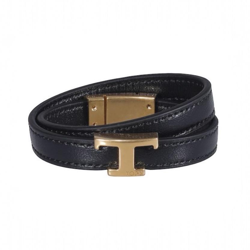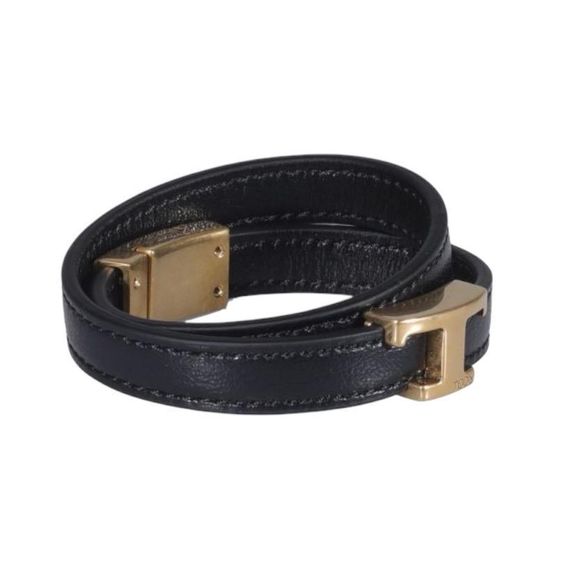 Tod's T Timeless 精美皮革雙圈手鍊 黑色