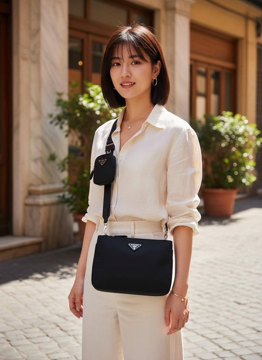 以環保再生尼龍與經典Saffiano皮革嵌件打造,