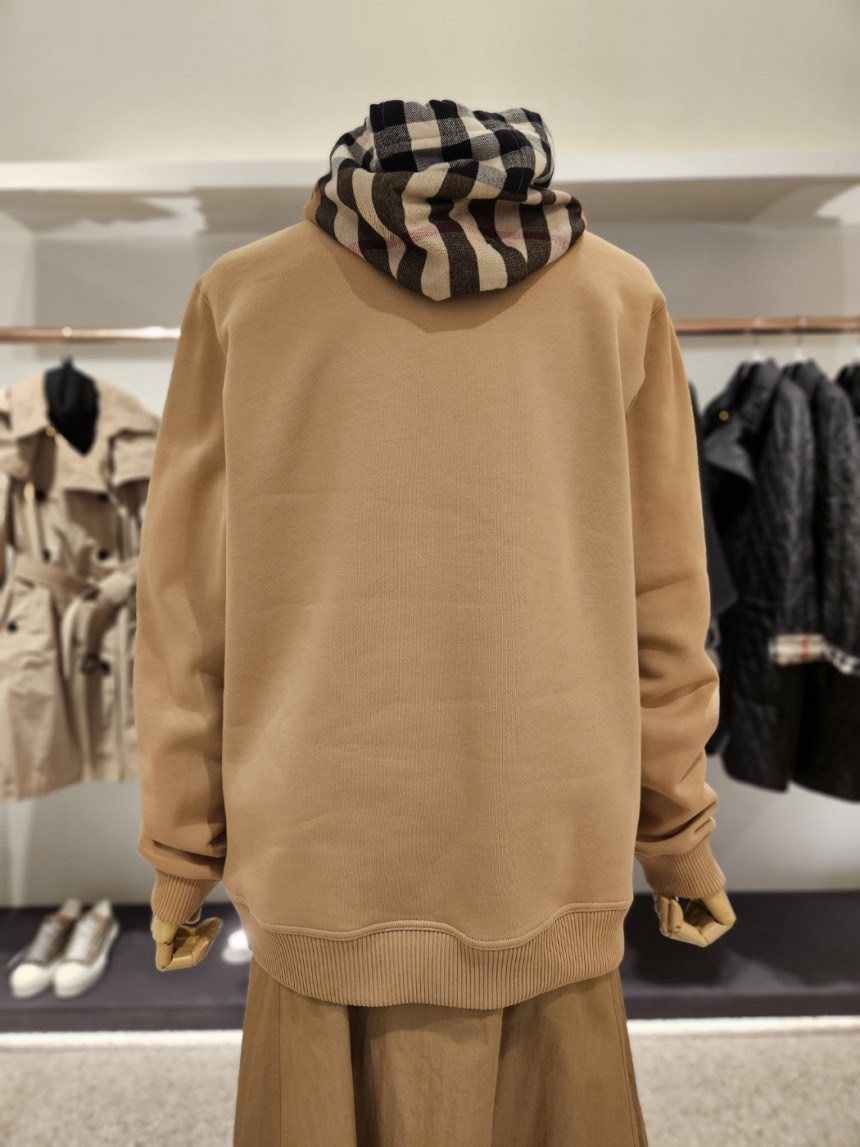 Burberry 80450061 男女同款格紋棉質混紡連帽衫上衣 駝色 XS/XL