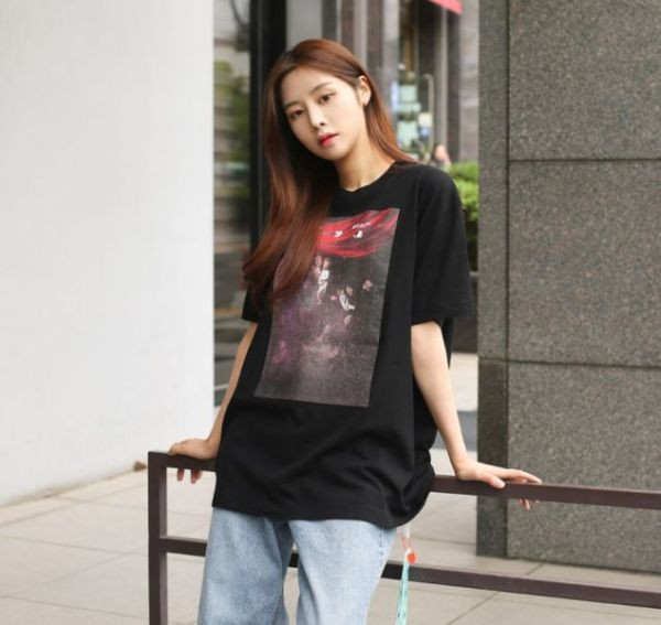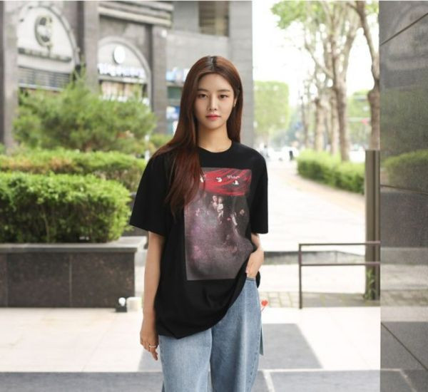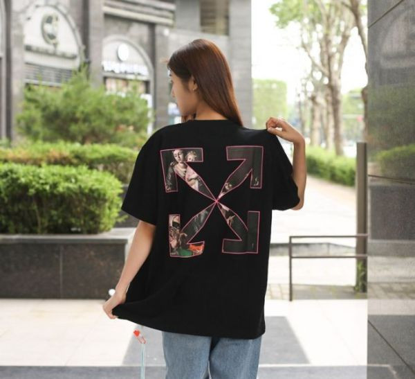 Off White 中性款圓領卡拉瓦喬油畫圖騰短袖上衣 黑