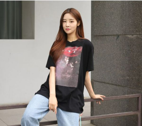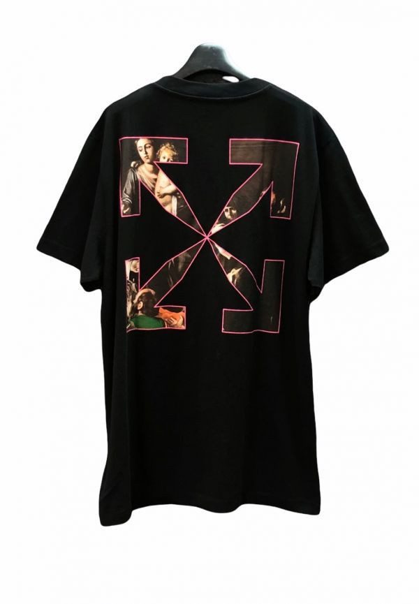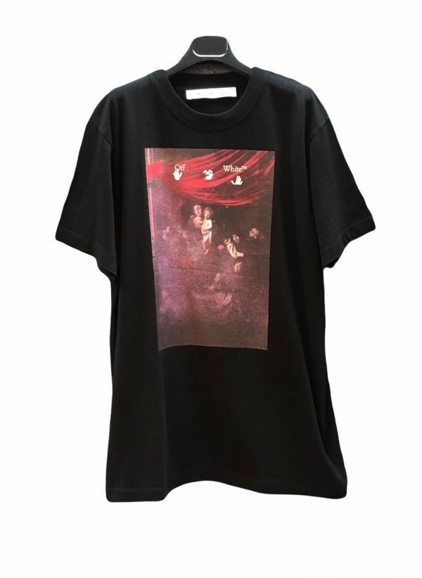 Off White 中性款圓領卡拉瓦喬油畫圖騰短袖上衣 黑 XS/S/M