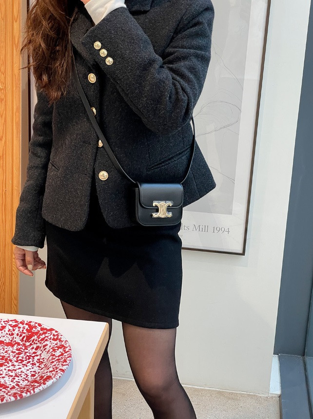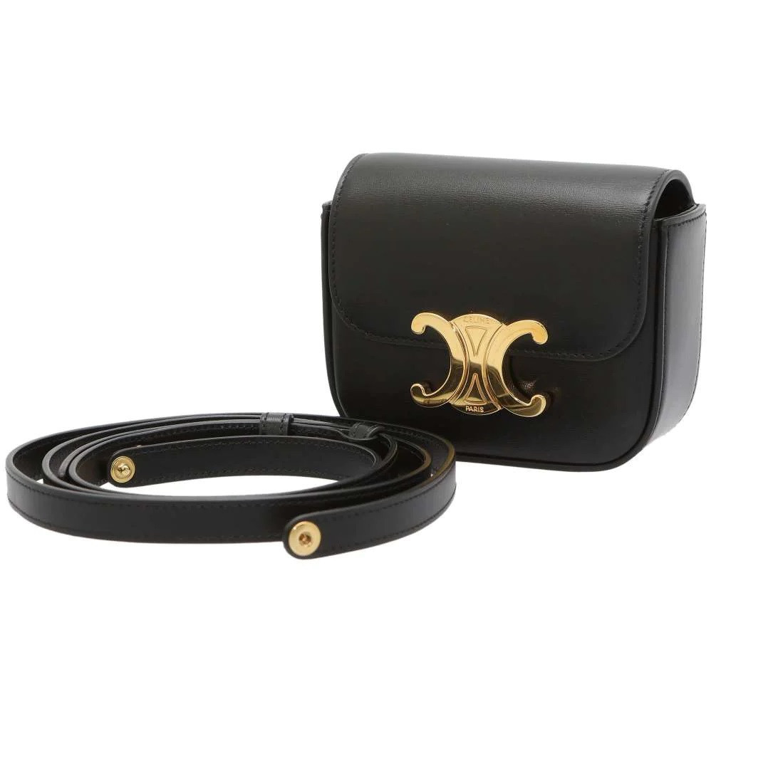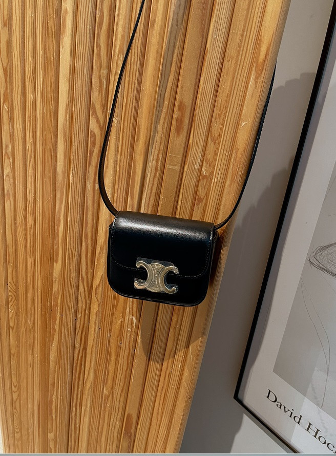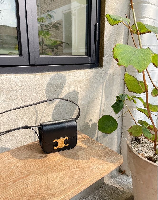 Celine 10I513 閃亮小牛皮迷你凱旋門包 黑色
