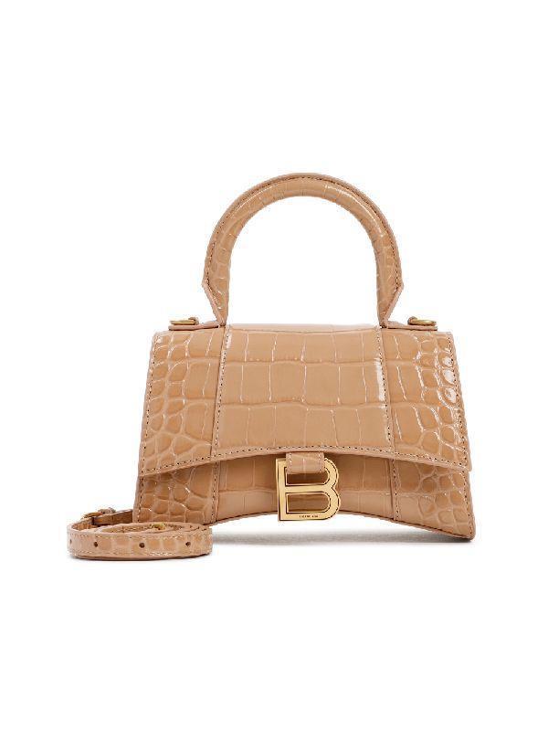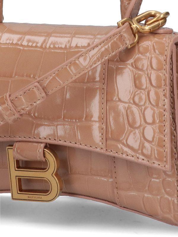 Balenciaga 592833 Hourglass XS 鱷魚紋小牛皮沙漏包 深裸色