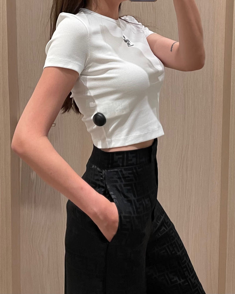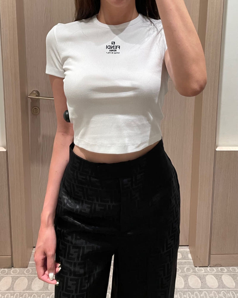 Fendi FS8110 女款修身剪裁短版圓領短袖T恤/上衣