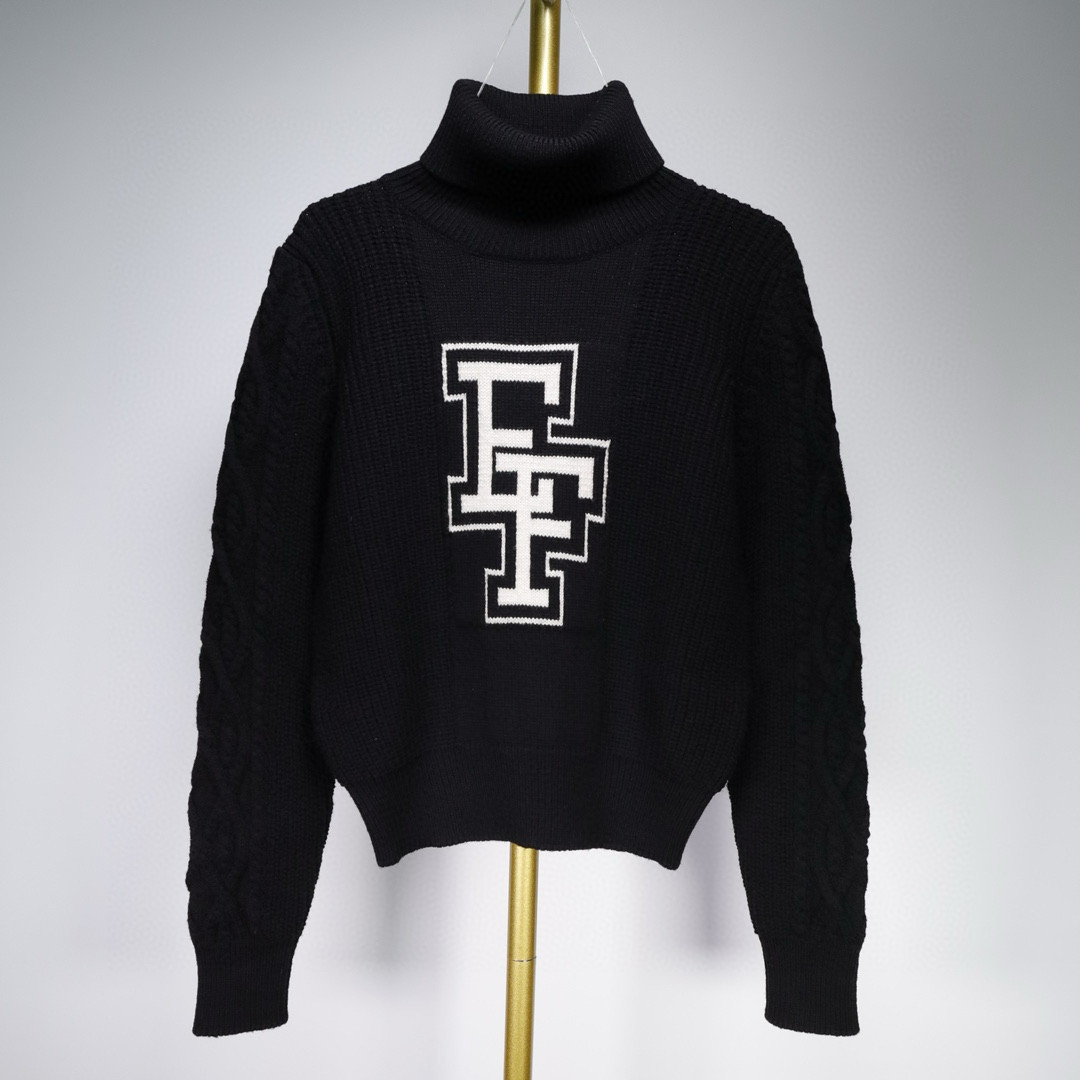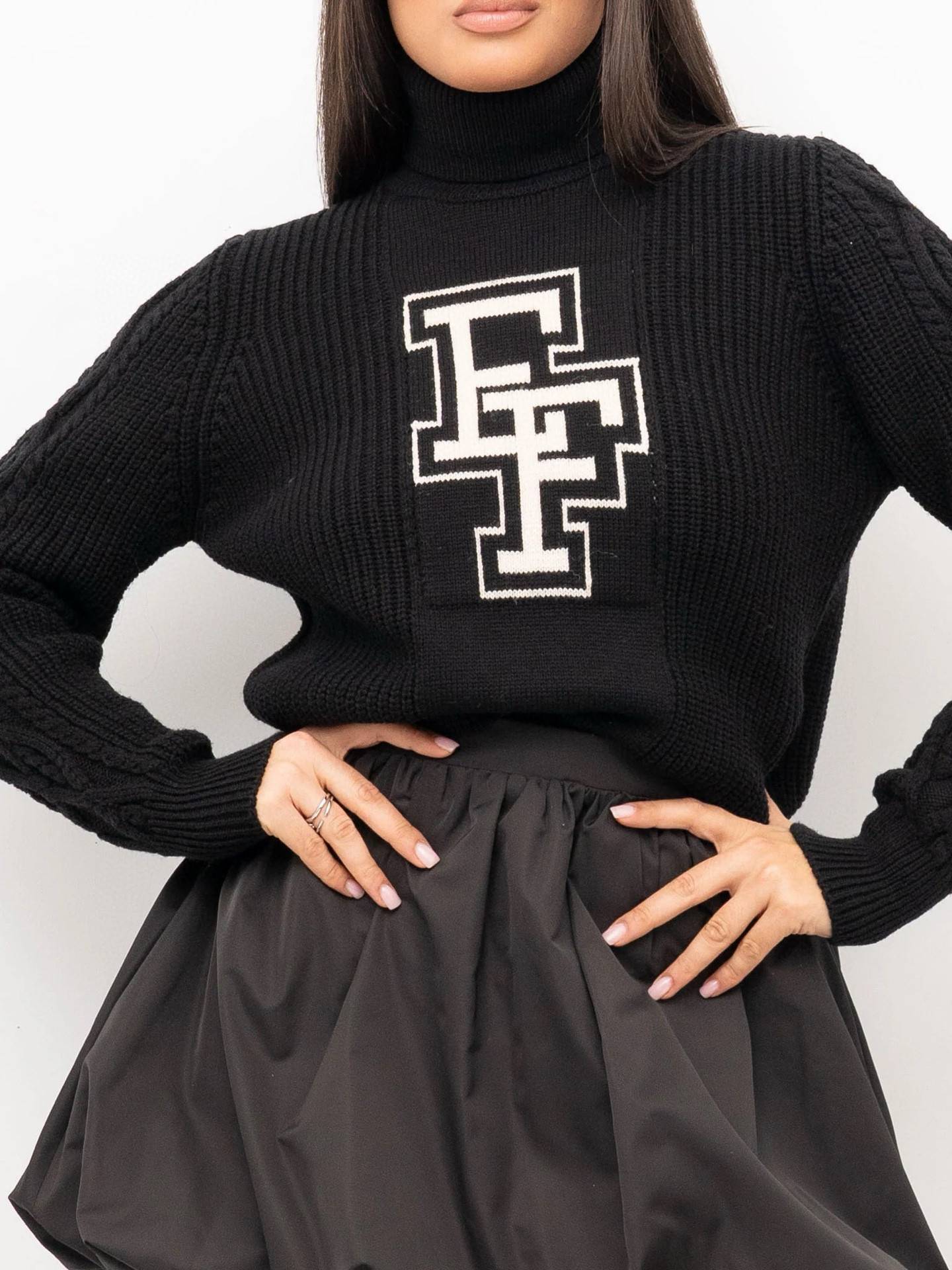 Elisabetta Franchi 女款 College 風格黑白色高領毛衣