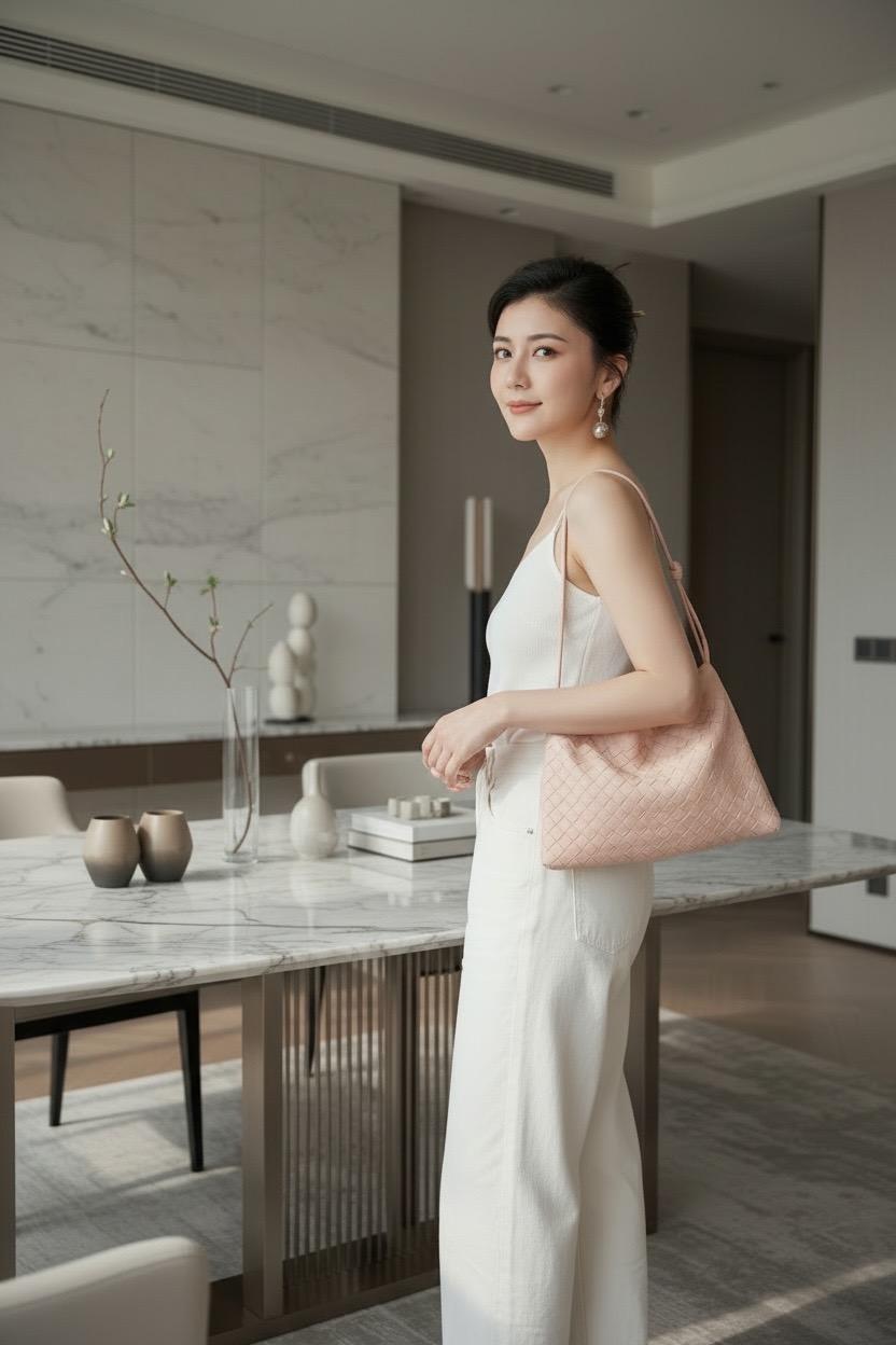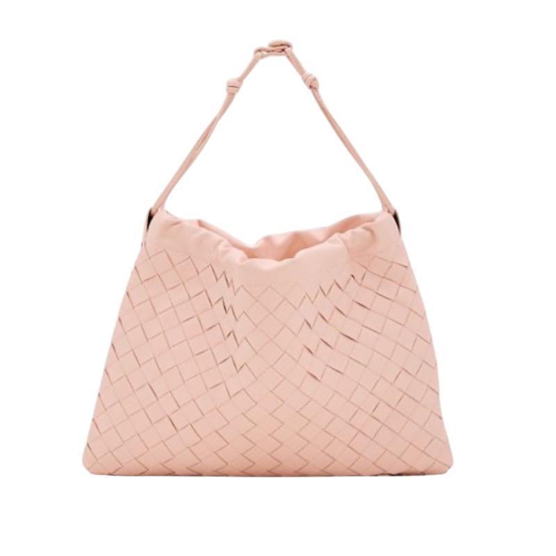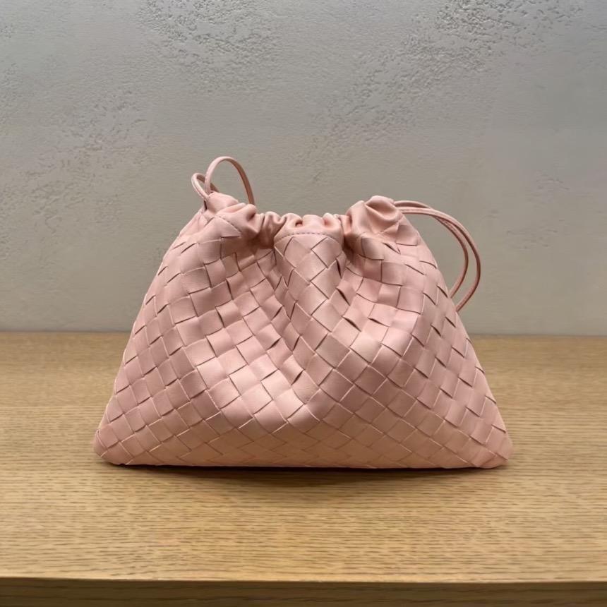 Bottega Veneta 796728 編織小牛皮抽繩福袋包 櫻花粉