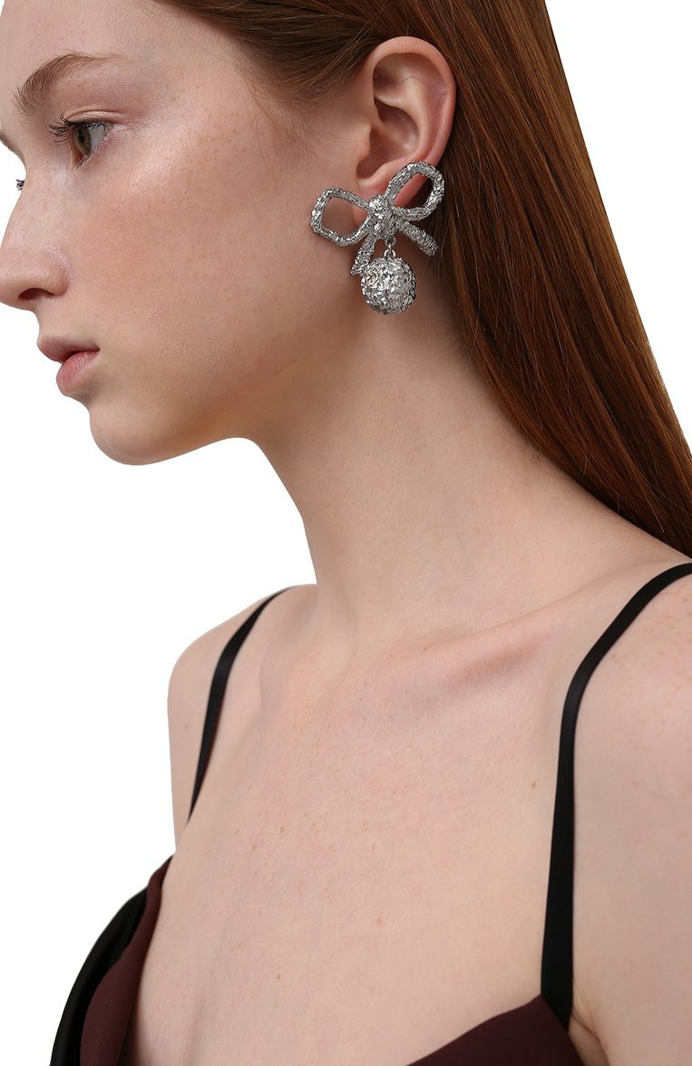 Balenciaga 679588 Bow-detailed 蝴蝶結紋理耳環 銀色