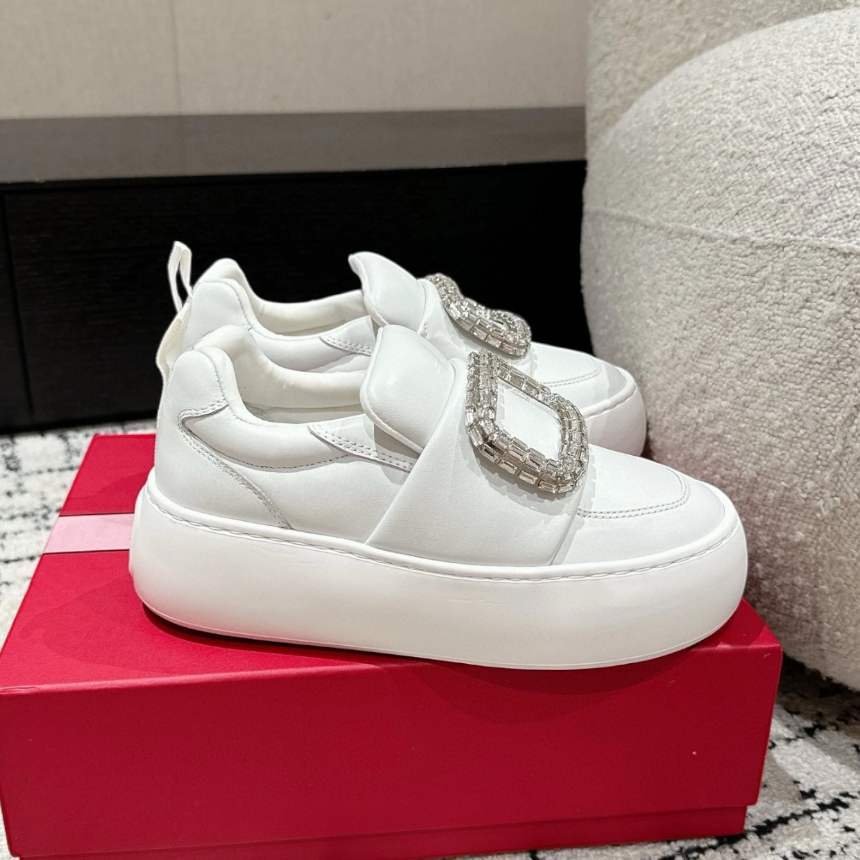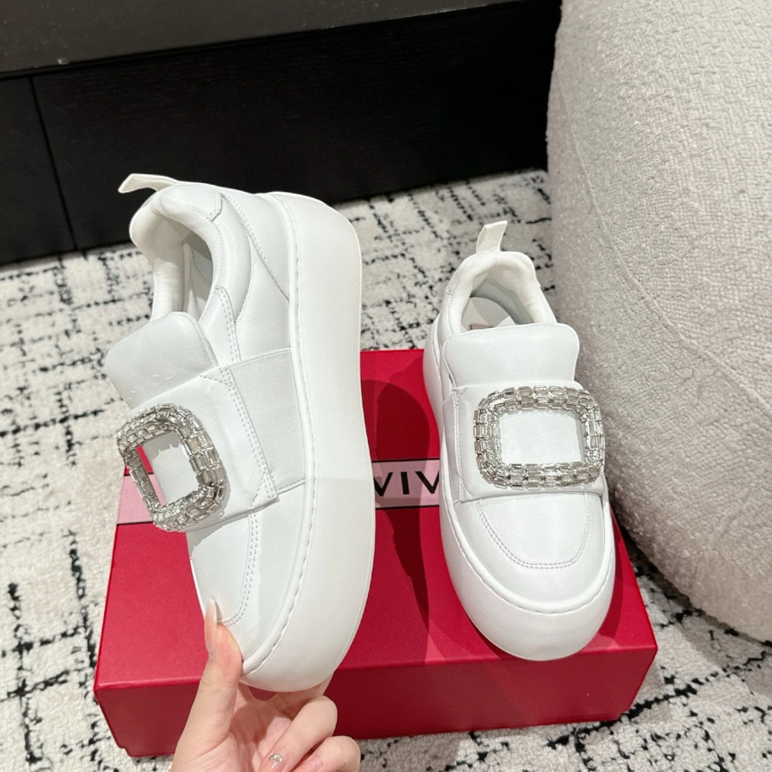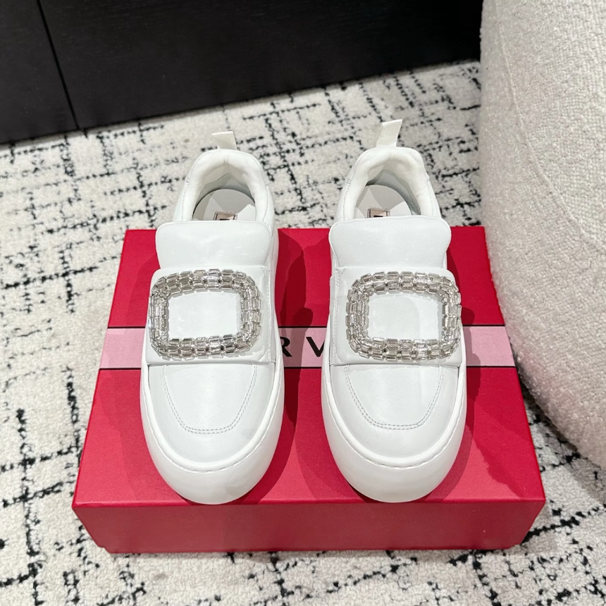 Roger Vivier 女款 Viv' Up 水鑽方扣納帕皮革樂福鞋 增高5公分 白色 EU35/36/36.5/37/37.5/38