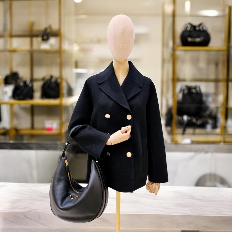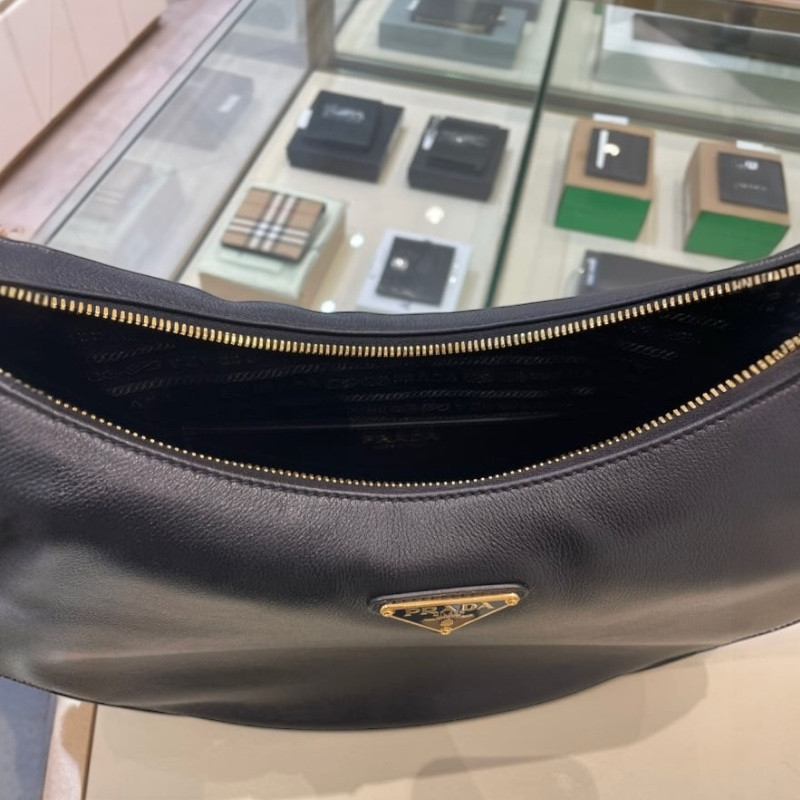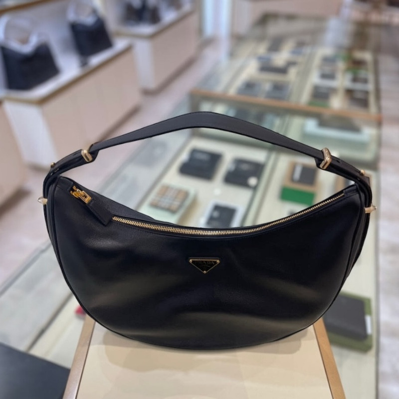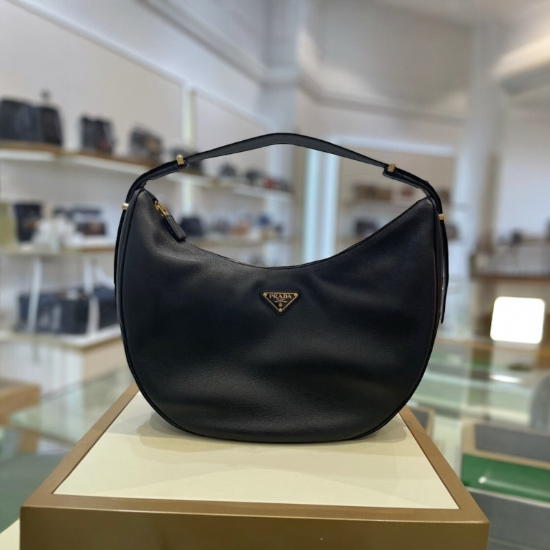Prada 1BC212 大款半月形皮革肩背包 黑色