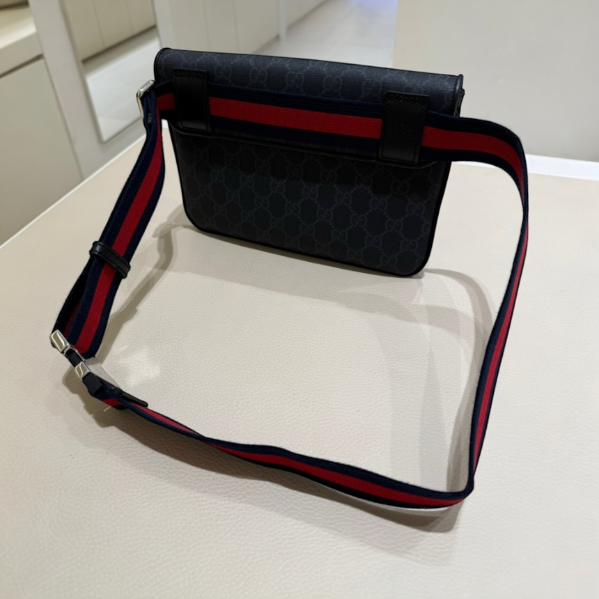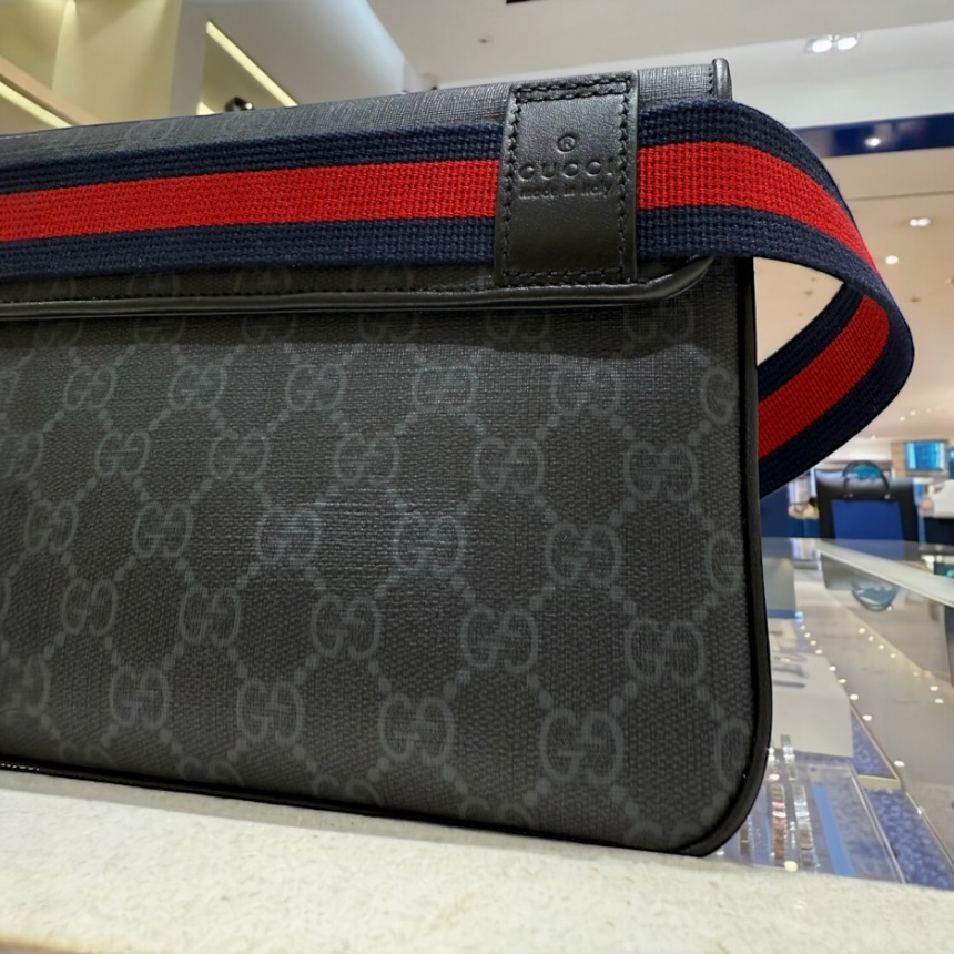 Gucci GG Supreme 胸前包/腰包以經典的 GG Supreme 帆布製作,