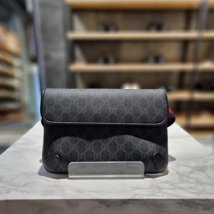 Gucci 792091 GG Supreme 胸前包/腰包 黑色