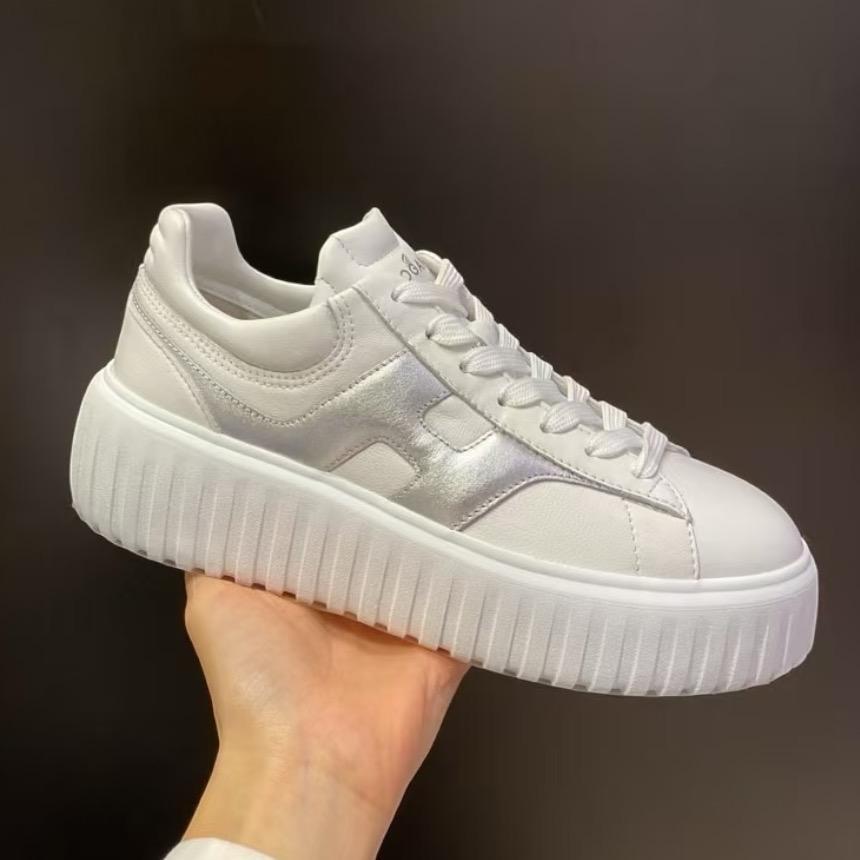 Hogan 女款 H-Stripes 光滑皮革6公分厚底運動鞋 白配銀色H EU36/37/37.5/38/38.5/39