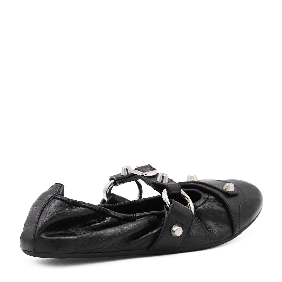 Balenciaga 828095 City Arena 小羊皮芭蕾平底鞋 黑銀鉚釘款 IT36/37/38/39/40