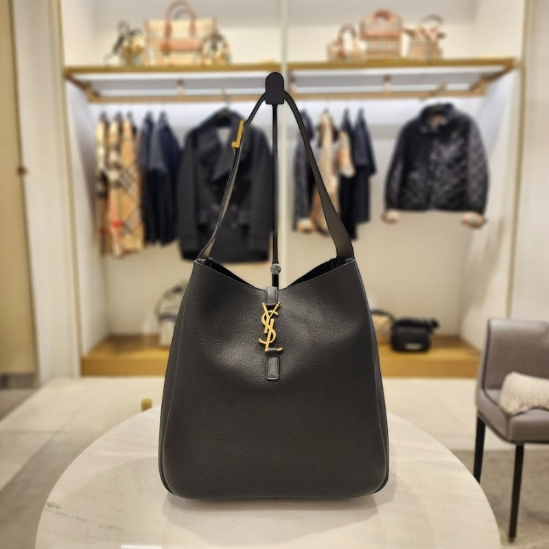 Saint Laurent 753837 Le 5 A 7 柔軟粒面皮革大款肩背包 黑色