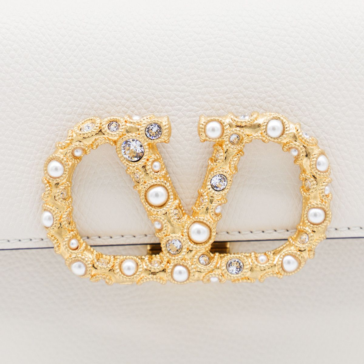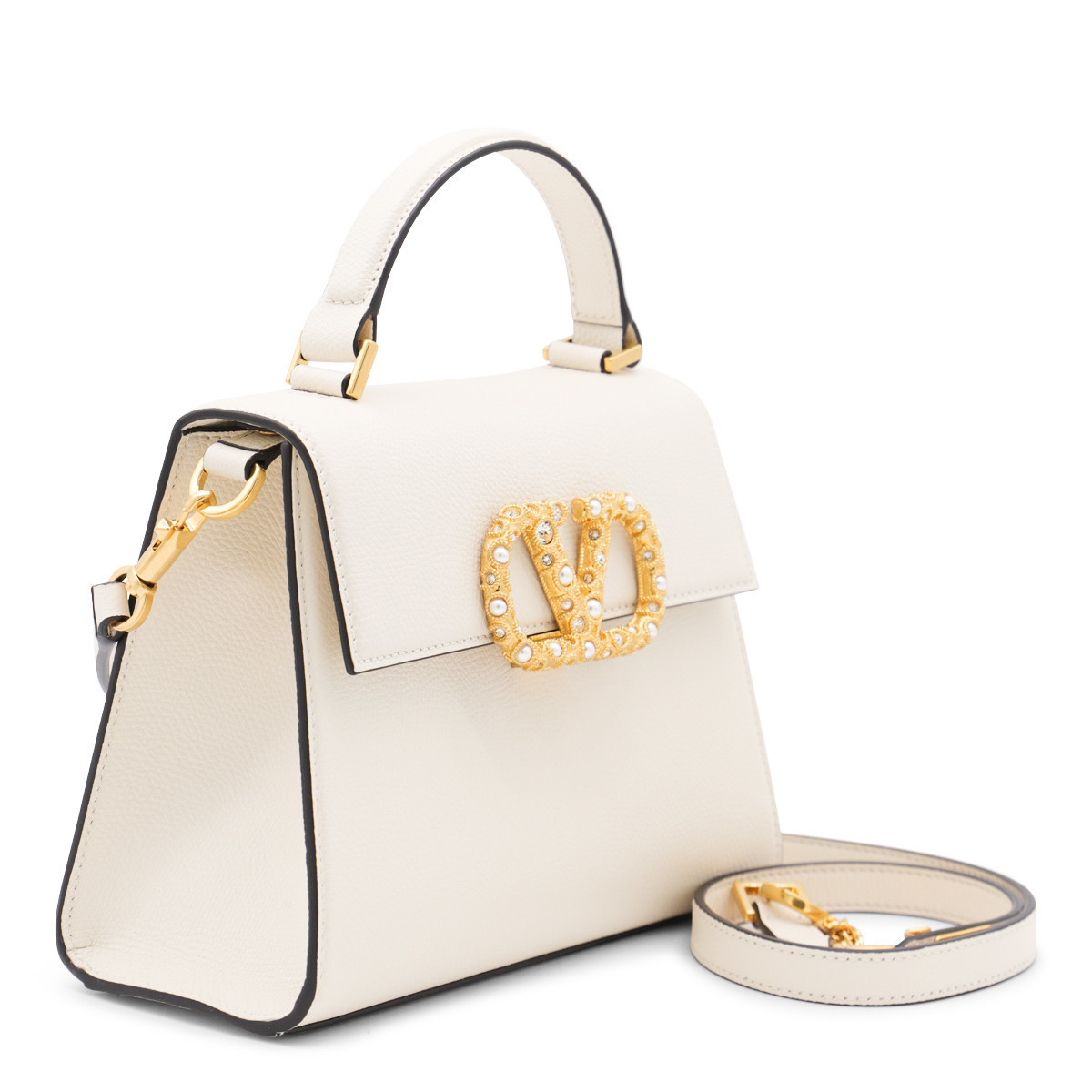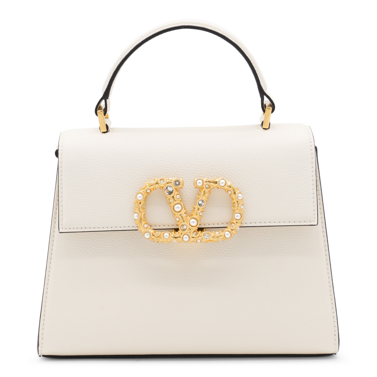 Valentino Garavani Vsling 寶石標誌粒面小牛皮手提包 奶油白色