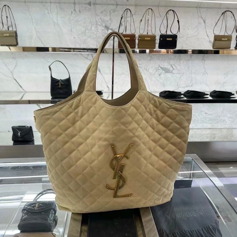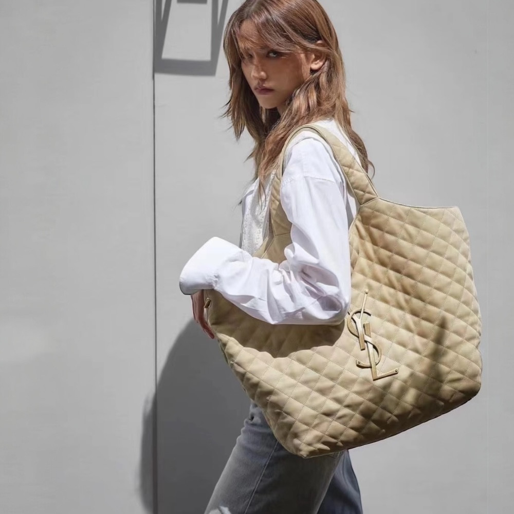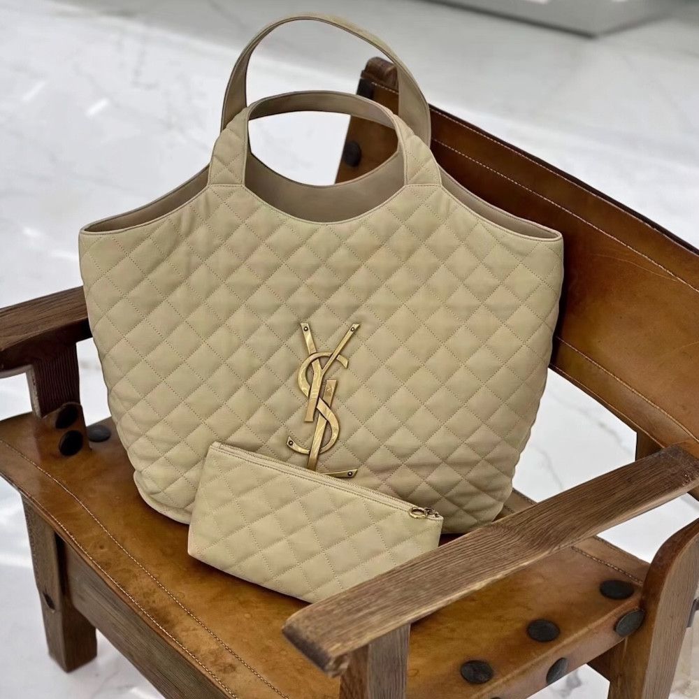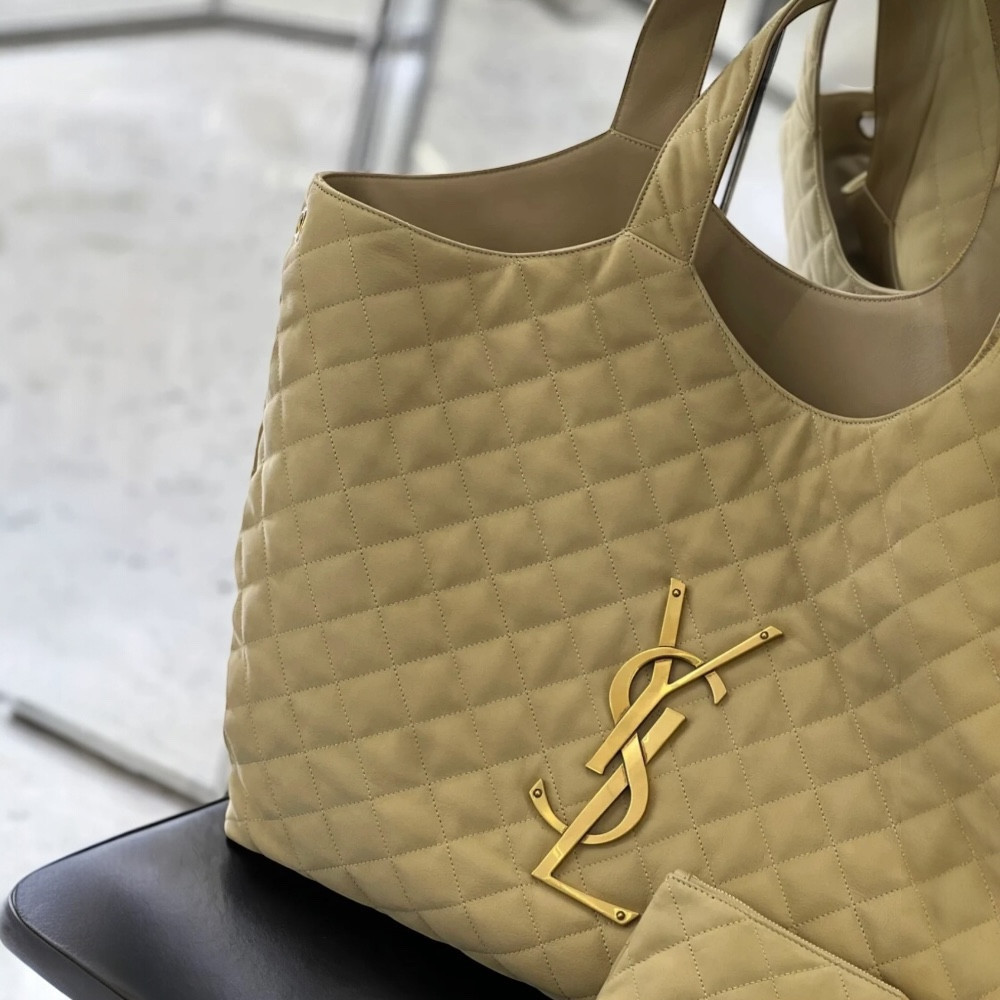 Saint Laurent 698651 Icare 絎縫小羊皮超大型購物包 米色