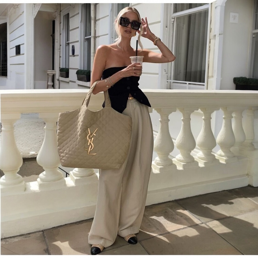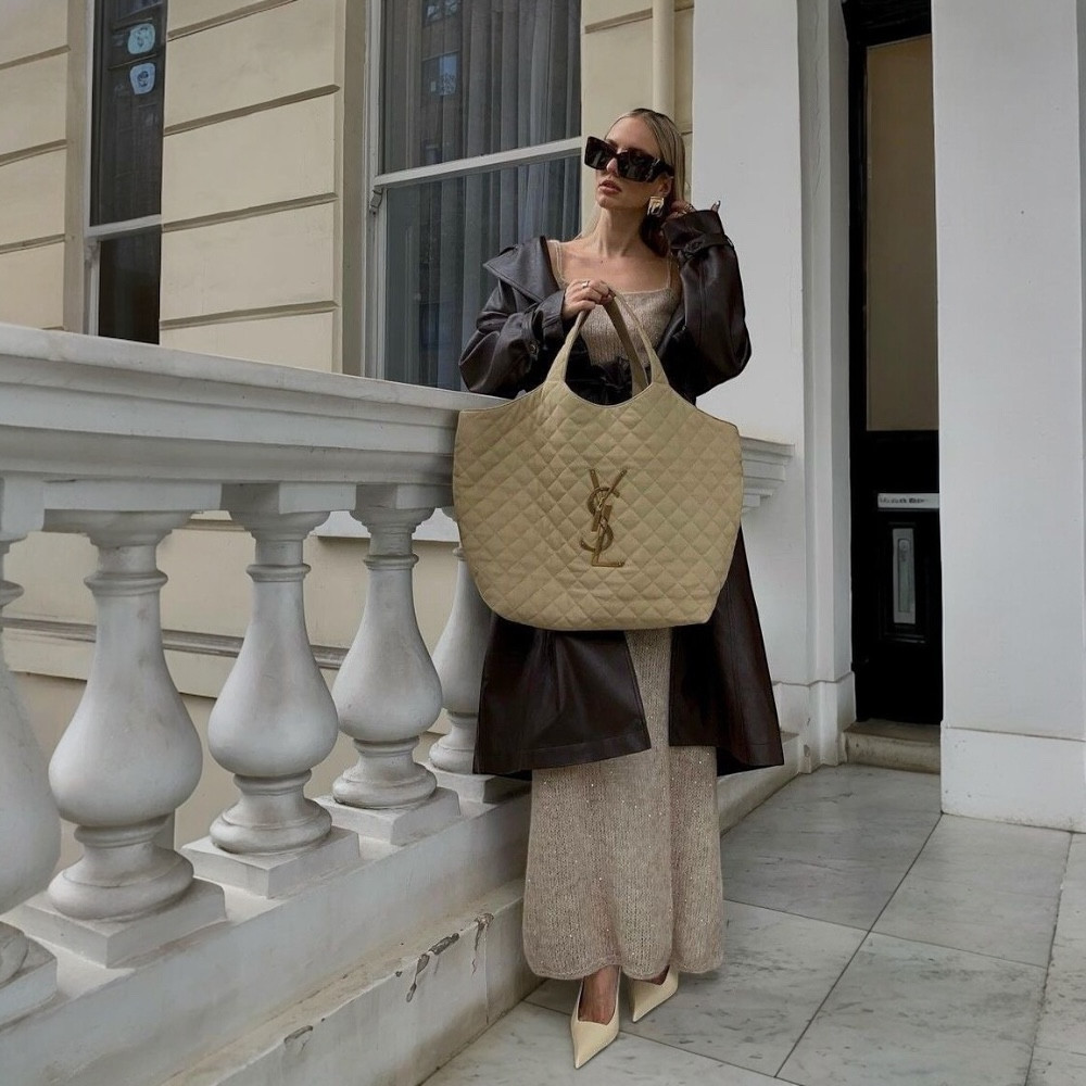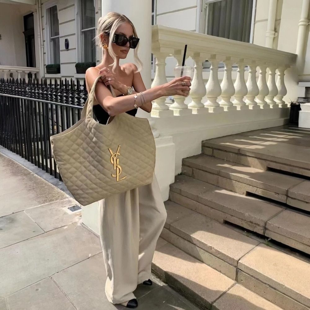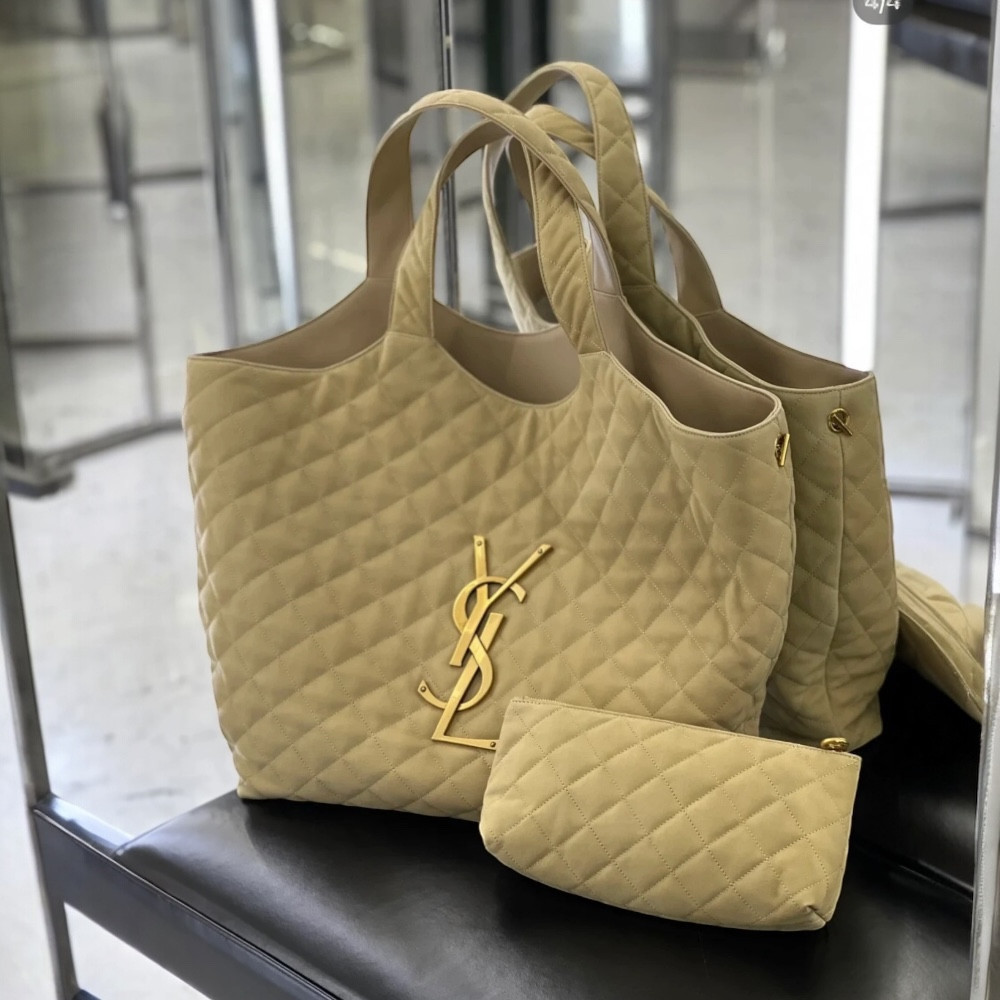 Saint Laurent 698651 Icare 絎縫小羊皮超大型購物包 米色