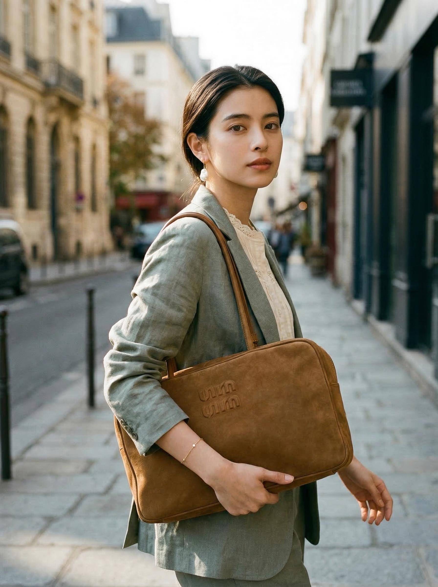 Miu Miu麂皮Beau手袋採用小牛皮製成, |