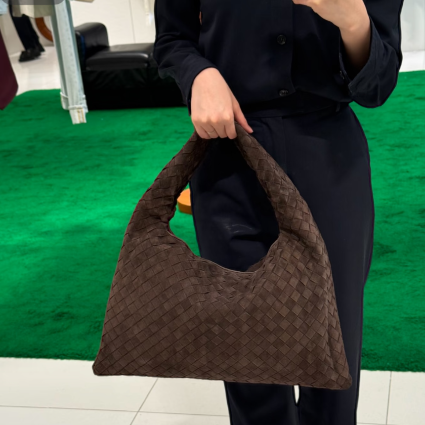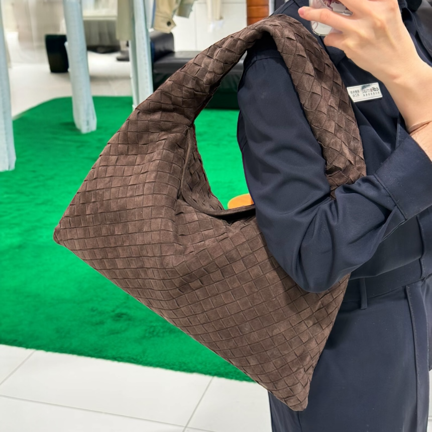Bottega Veneta 763970 Hop 大款麂皮 Intrecciato 肩背包