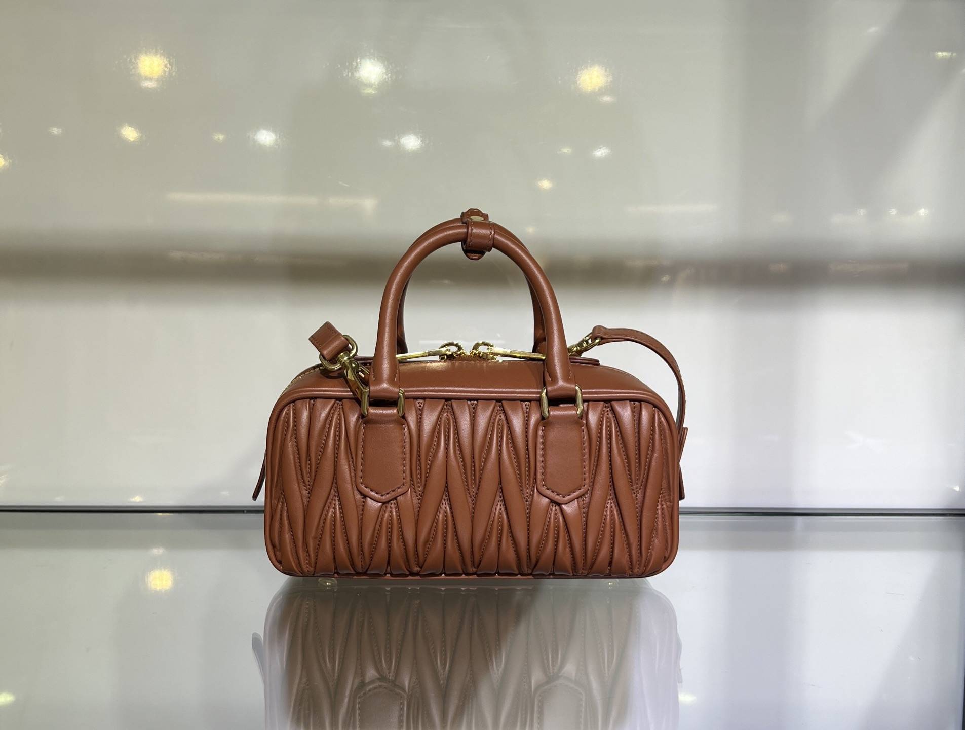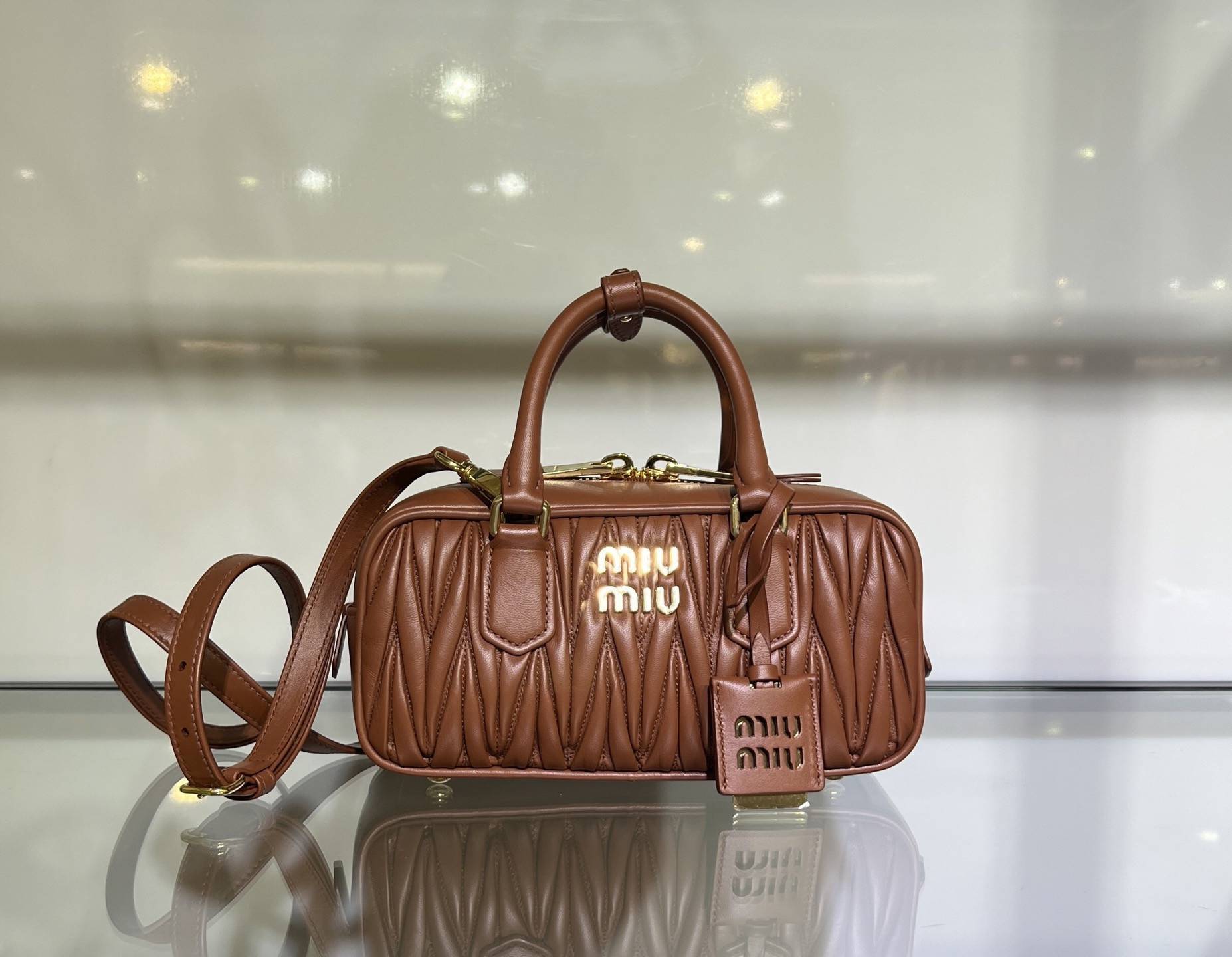 Miu Miu 5BB142 Arcadie Matelasse 皺褶小款納帕皮革包 鐵鏽紅