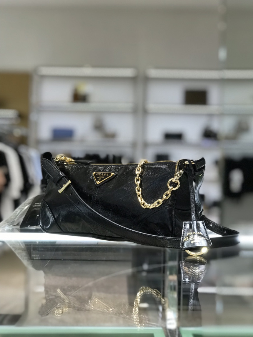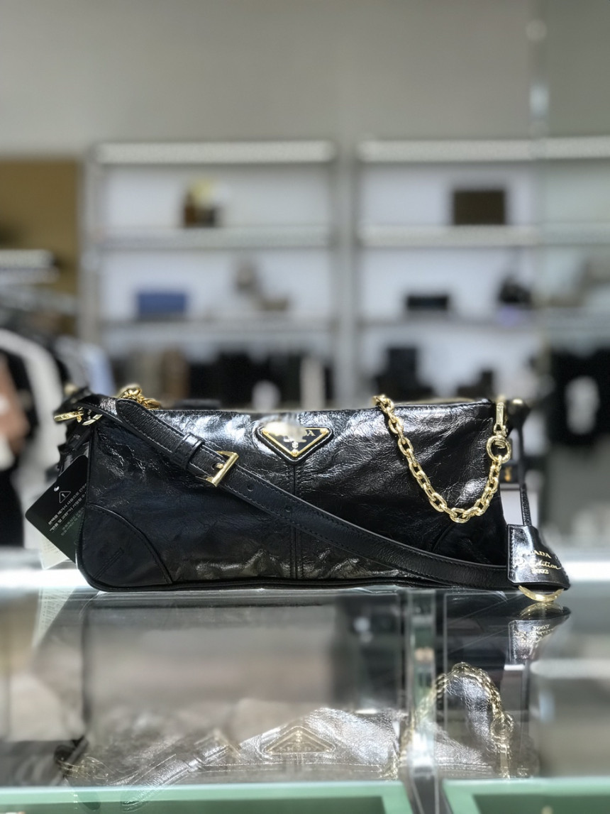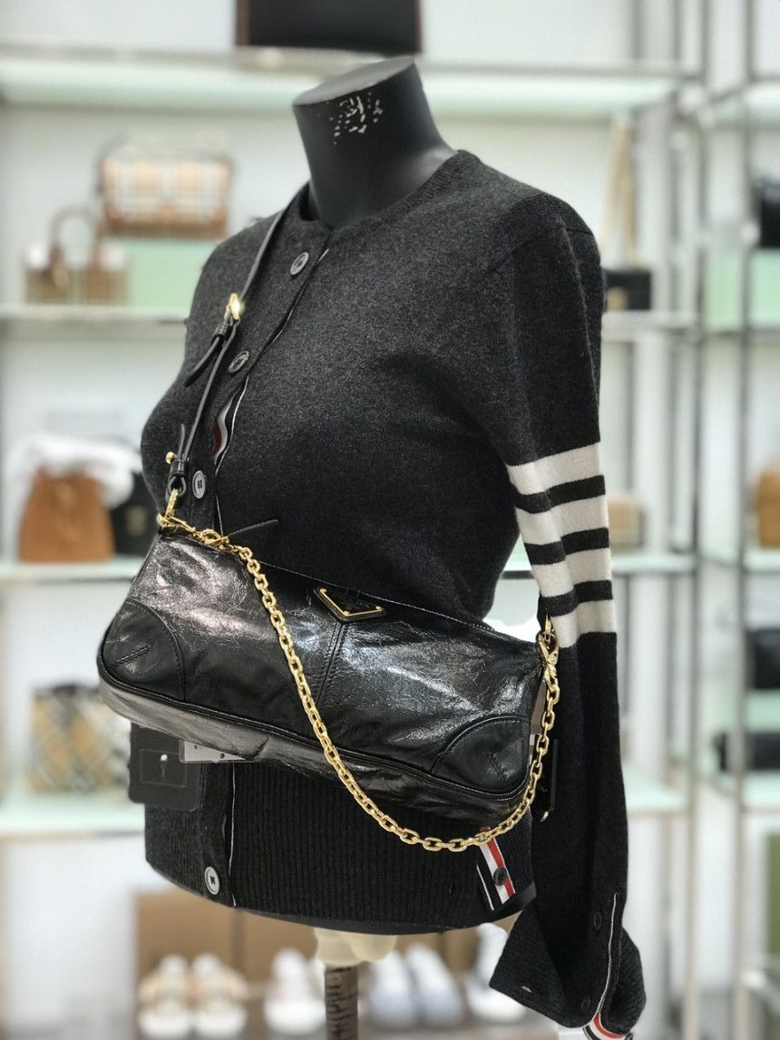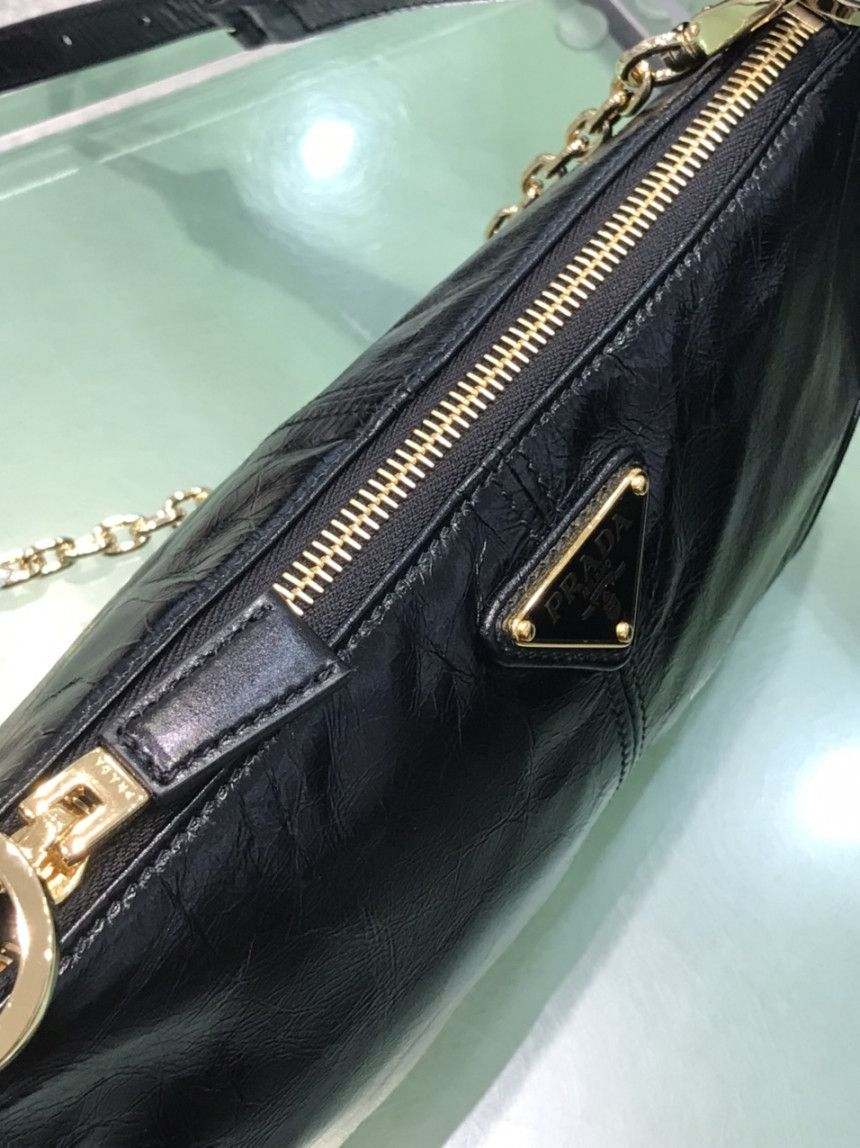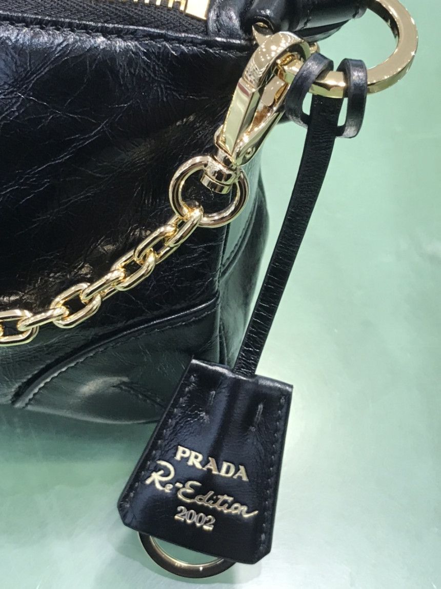 Prada 1BC221 Re-Edition 2002 中號皮革肩背包 黑色