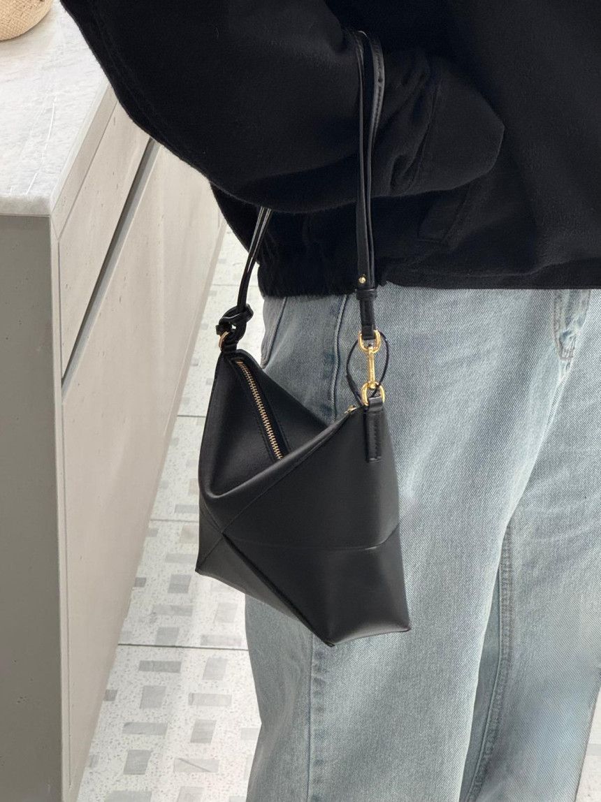 Loewe 亮面納帕小牛皮 Puzzle Fold Pouch包 黑色