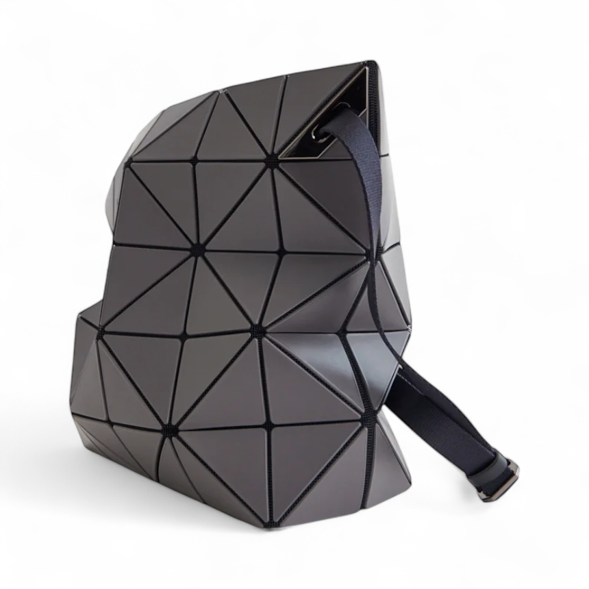 採用中性色調的炭灰色,展現低調高級氛圍。 立體幾何結構隨光線變化呈現動態光影效果, 搭配可調節厚墊肩帶, 實現肩背或斜背兩用風格。