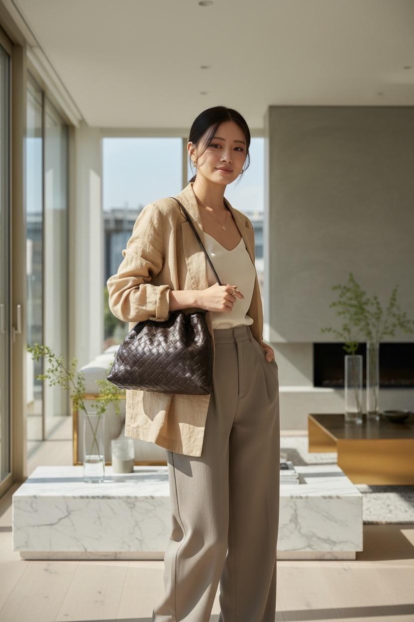 材質:小牛皮編織外層,尼龍內裡。