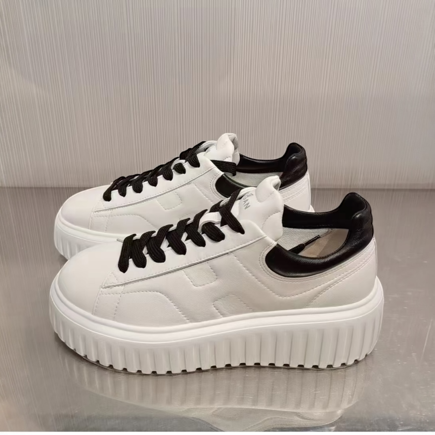 經典白色 Nappa 皮革鞋面搭配黑色 H 標誌。 |