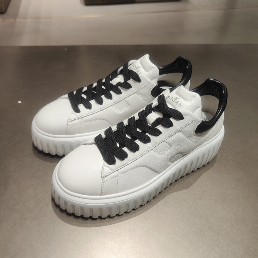 Hogan 女款 H-Stripes Nappa 皮革餅乾運動鞋 白/黑配色 增高5.8公分 EU36/36.5/37/37.5/38/38.5/39/40
