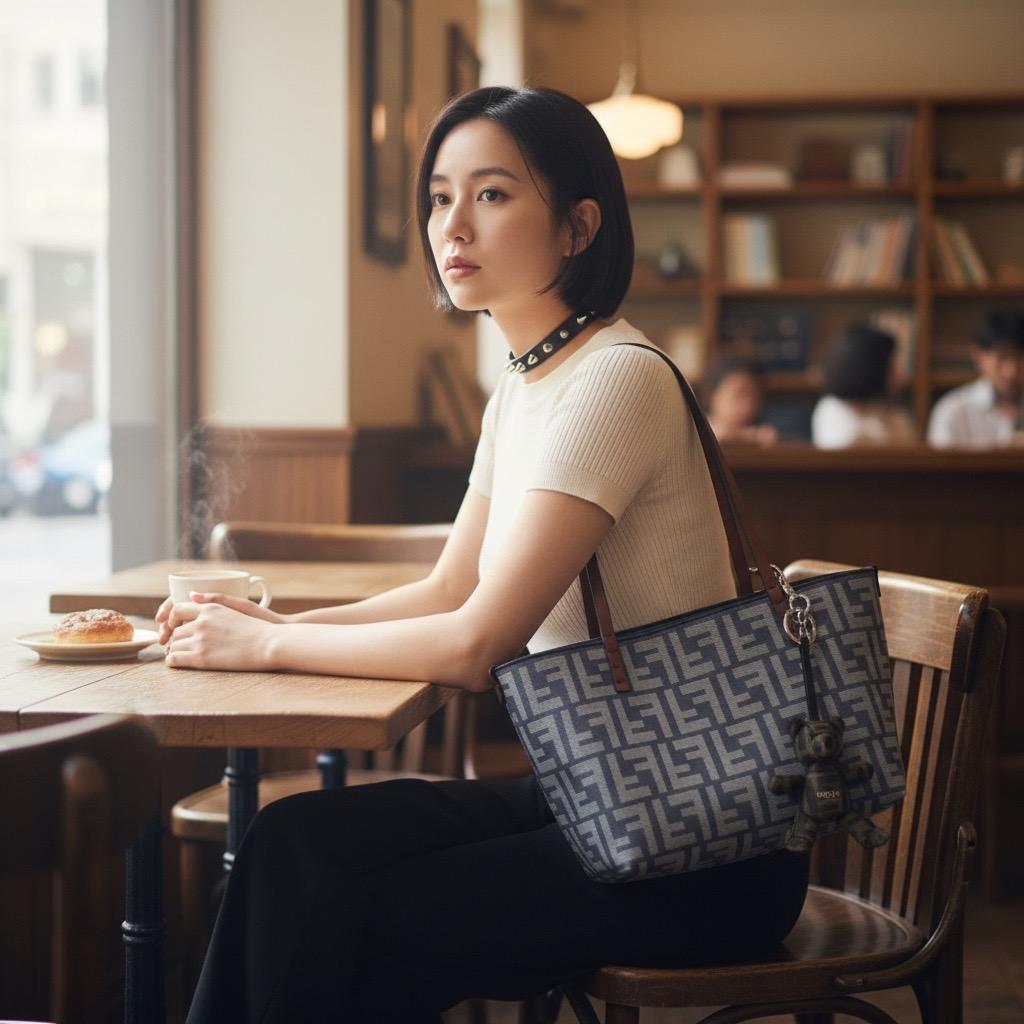 Fendi 8BH424 Roll 小款雙面 FF 緹花托特手提包