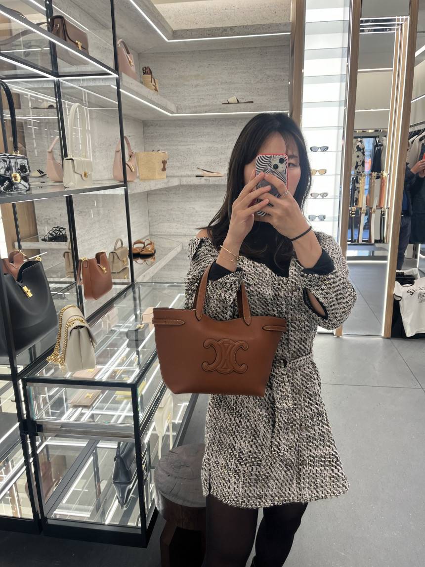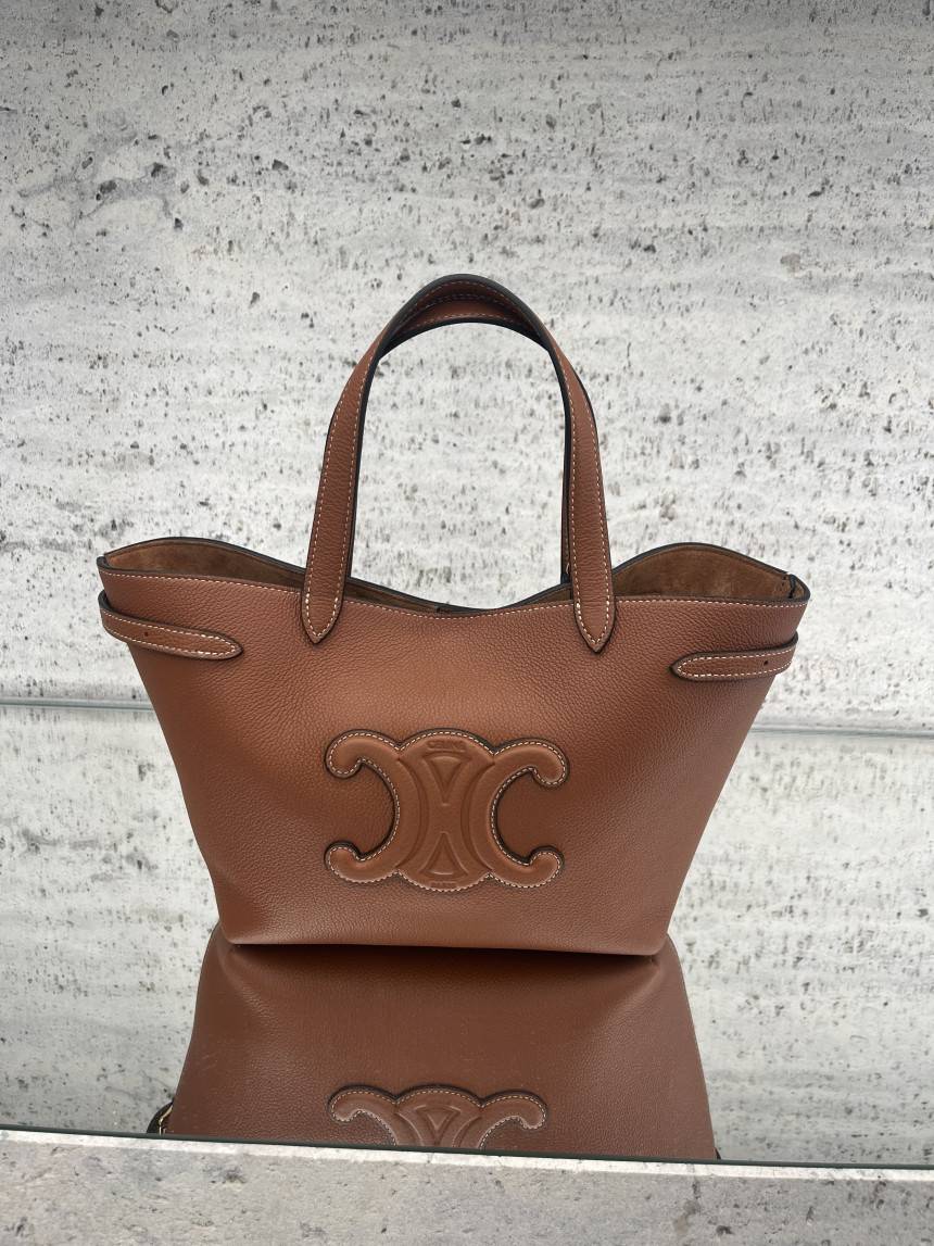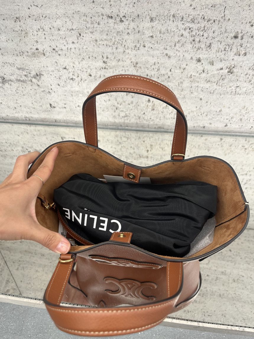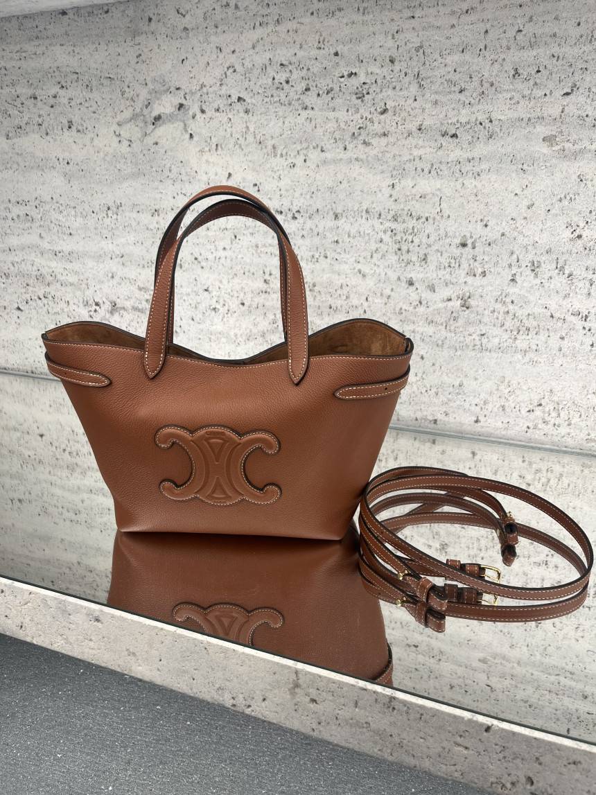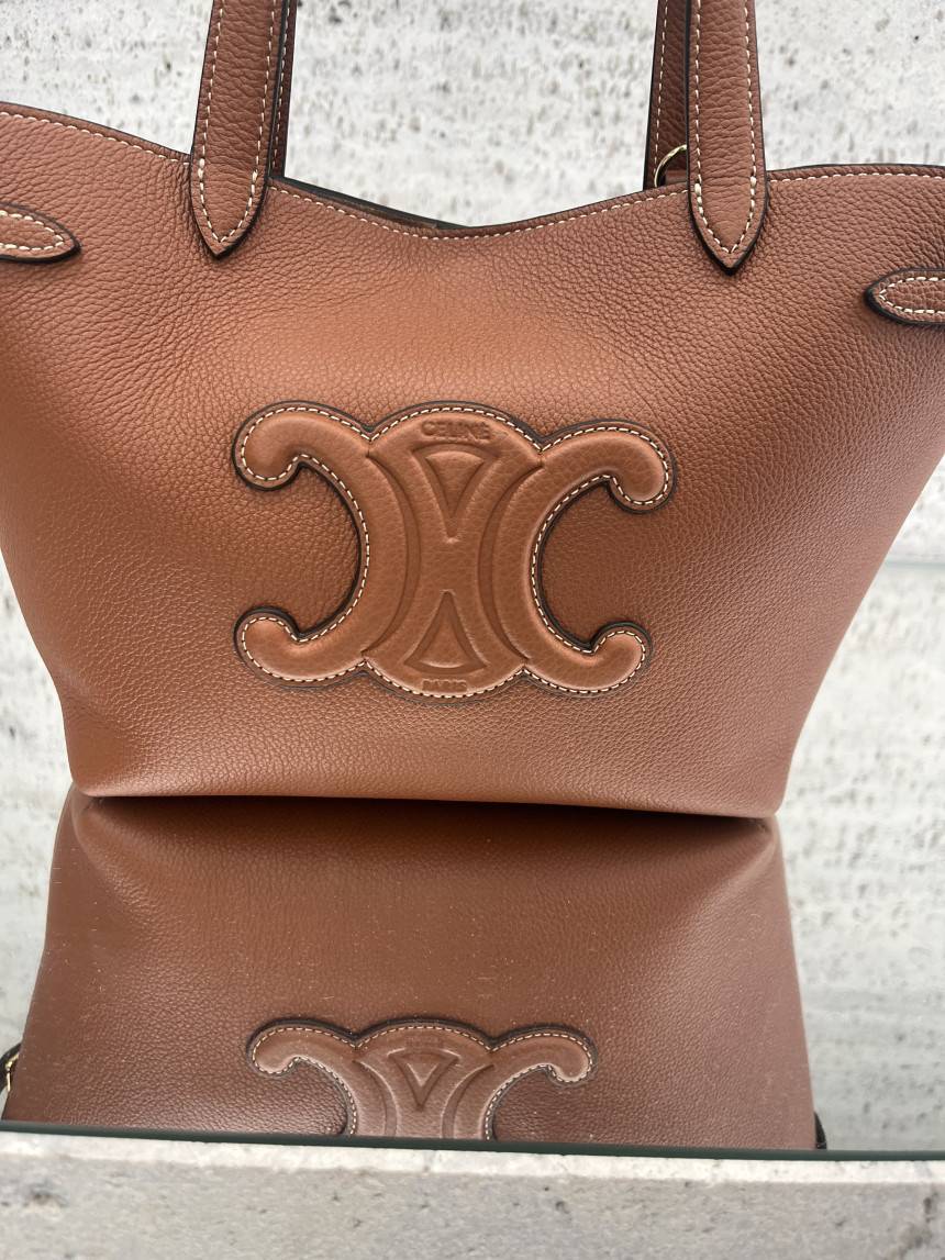 Celine 121743 Mini Cabas Anais Cui 粒面皮革托特包 焦糖黃褐色