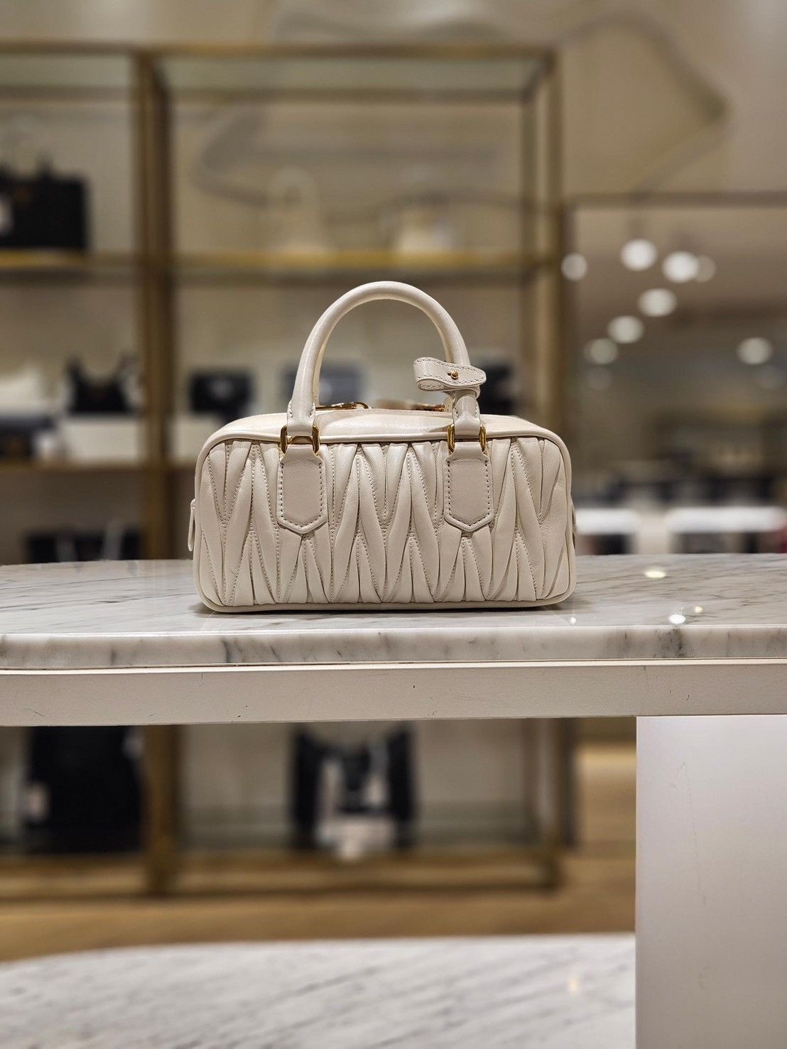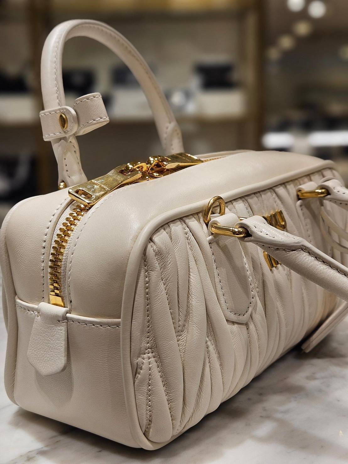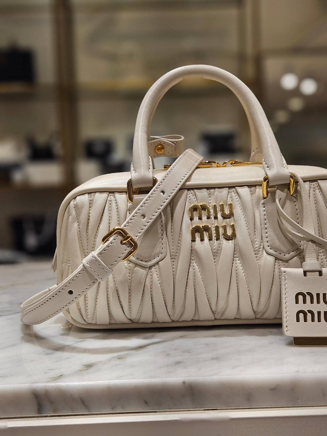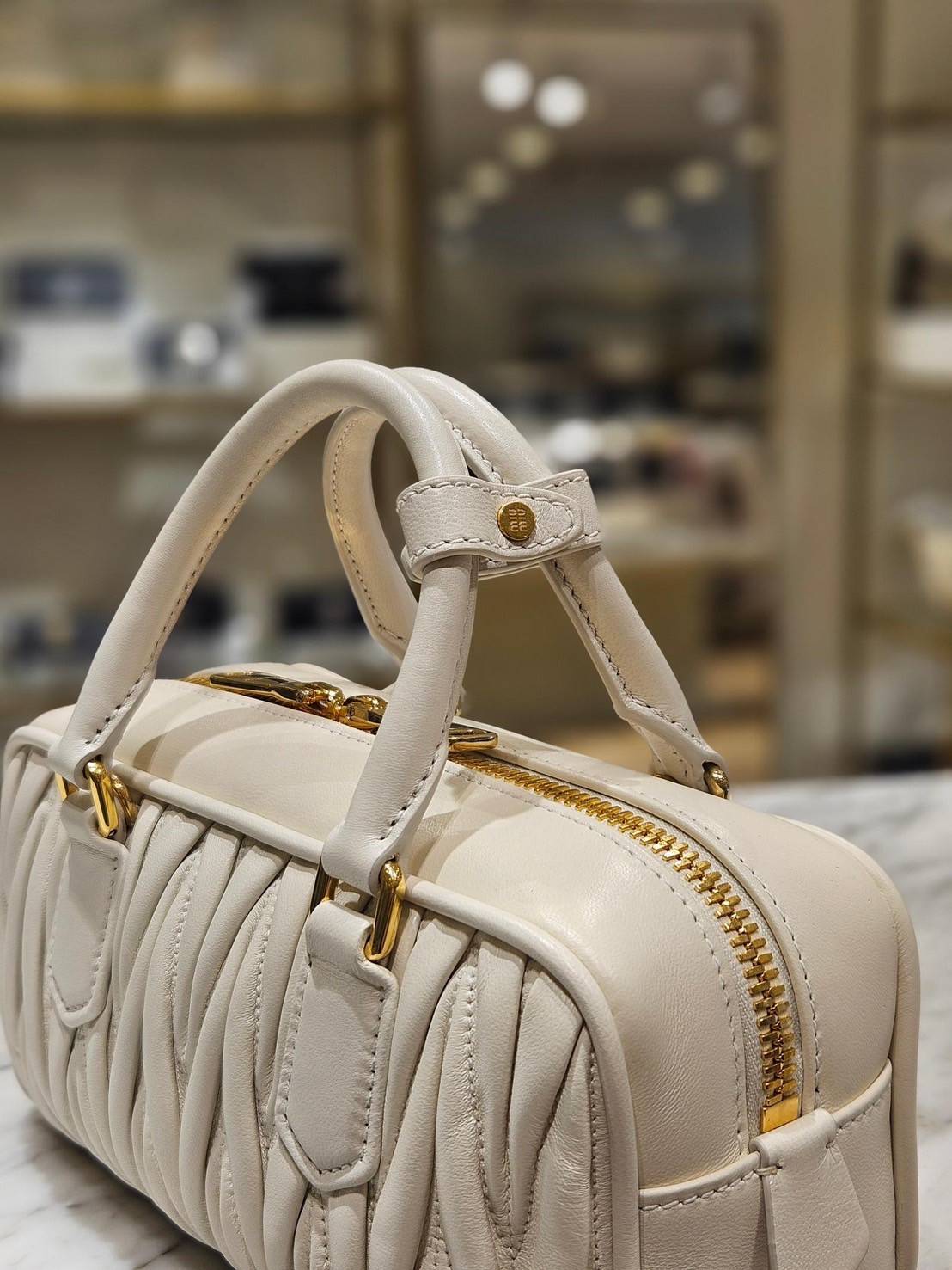 Miu Miu 5BB142 Arcadie Matelasse 皺褶小款納帕皮革包 白色