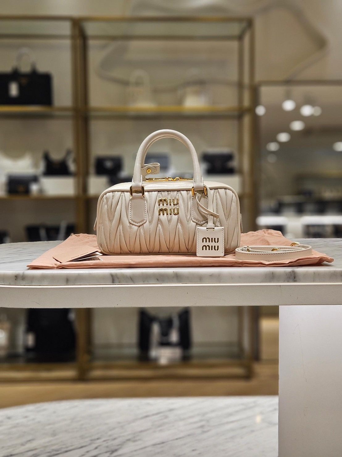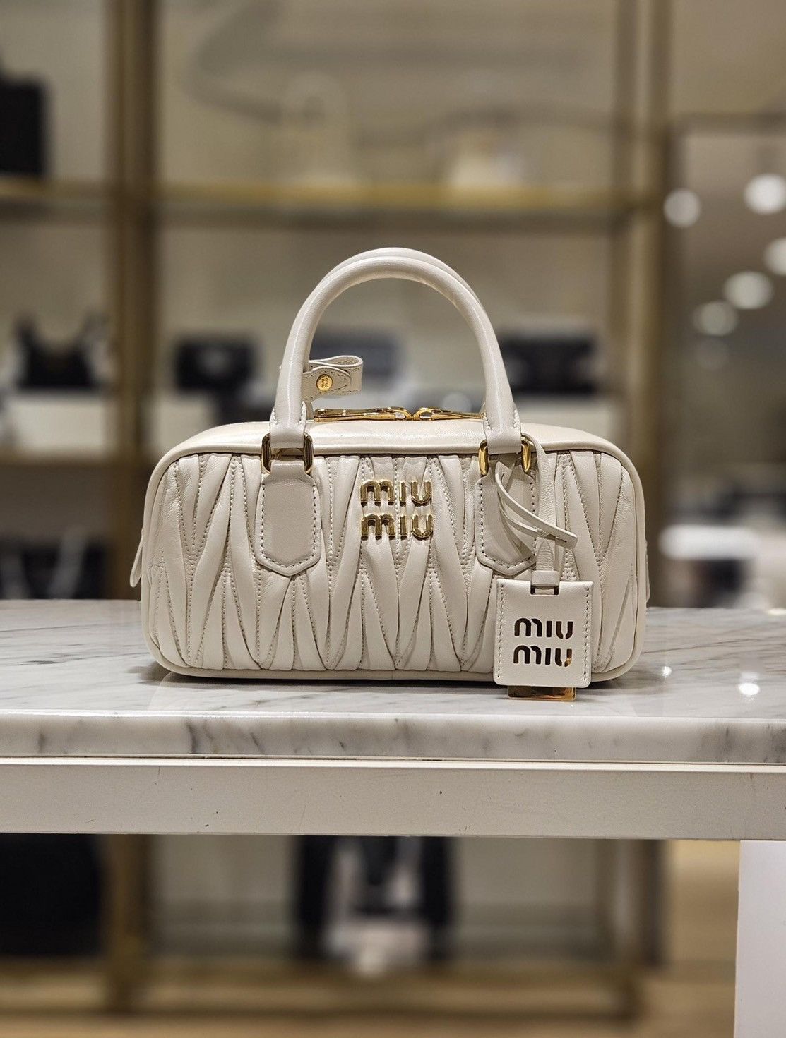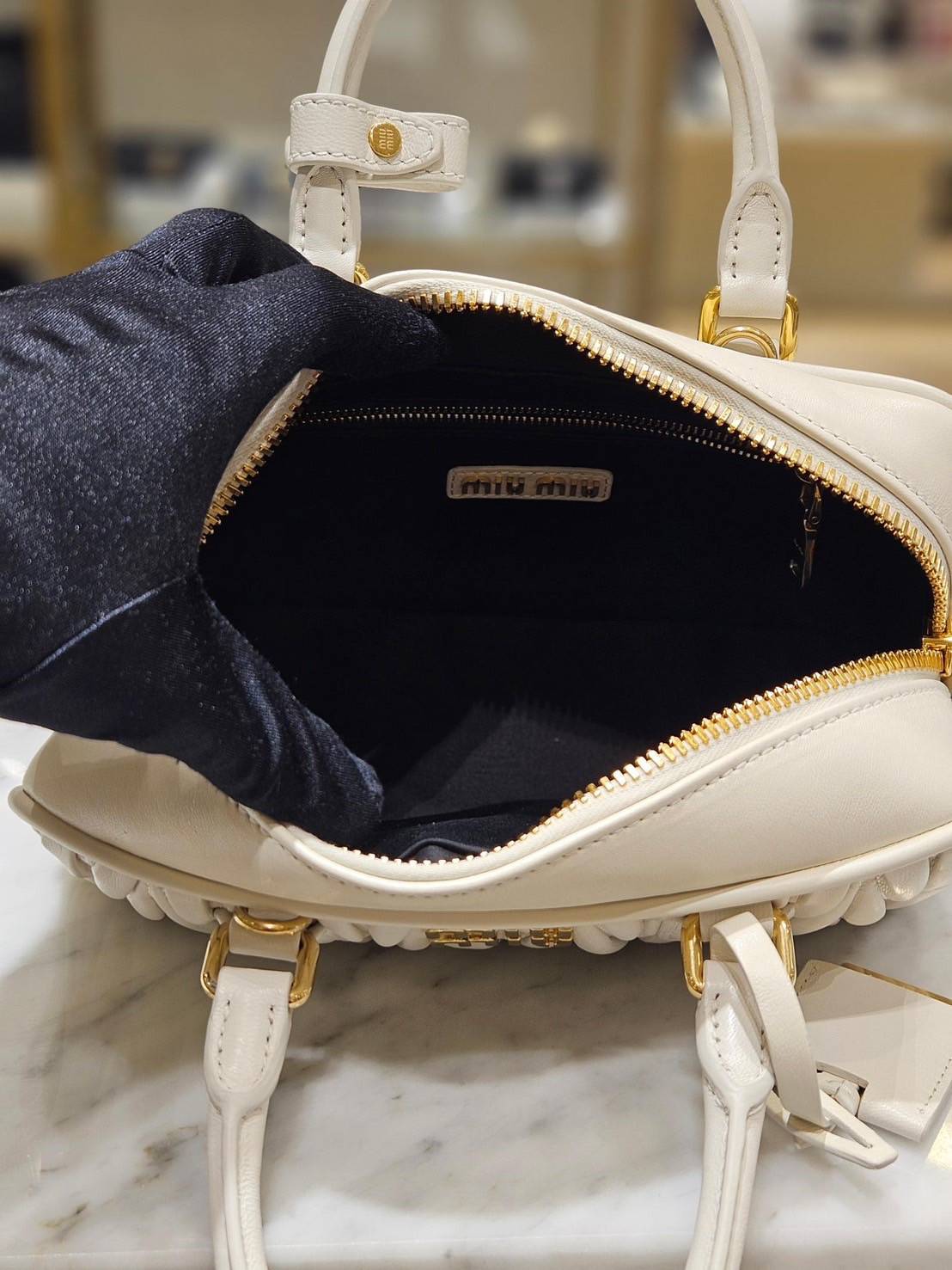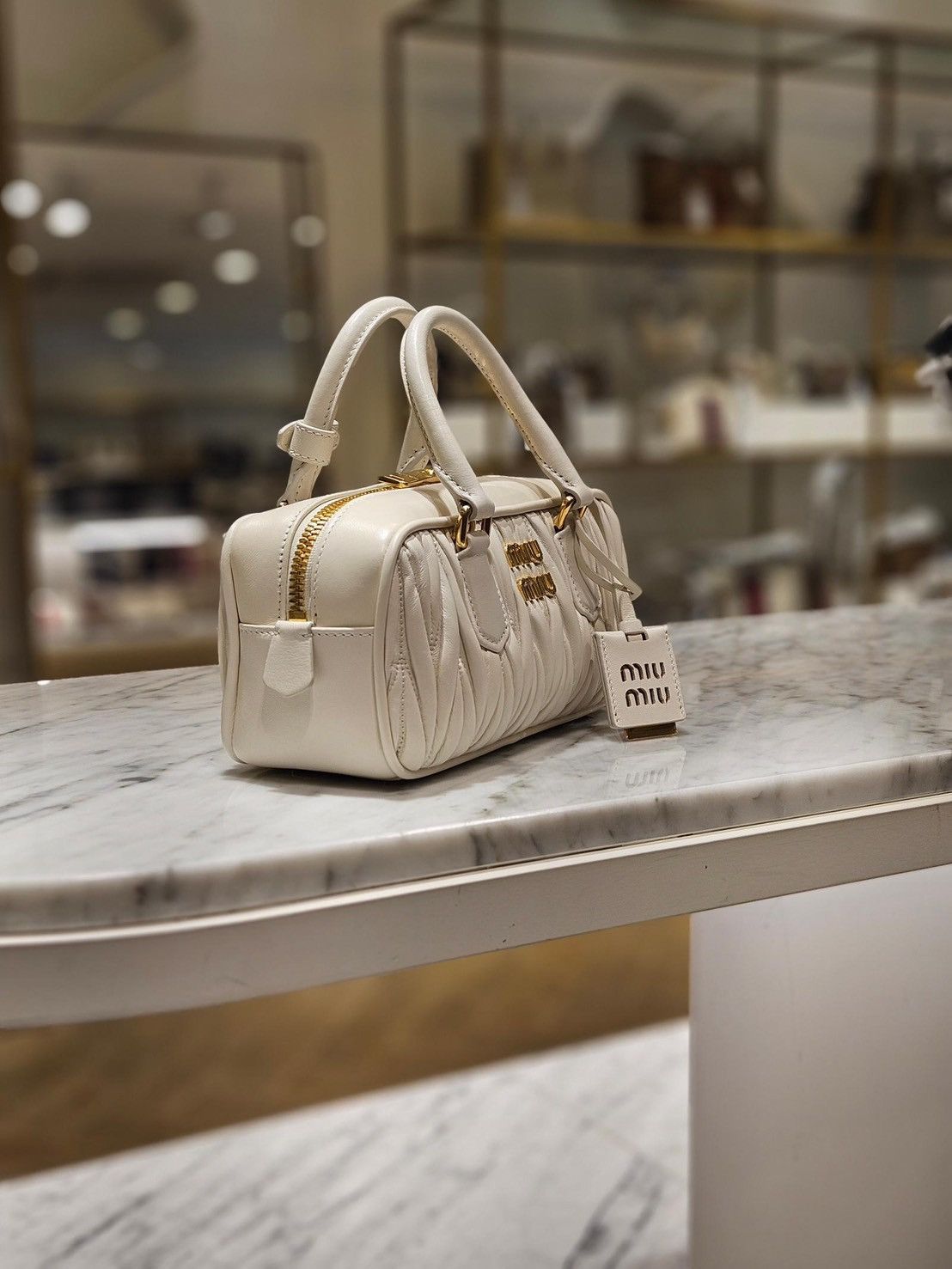 Miu Miu 5BB142 Arcadie Matelasse 皺褶小款納帕皮革包 白色
