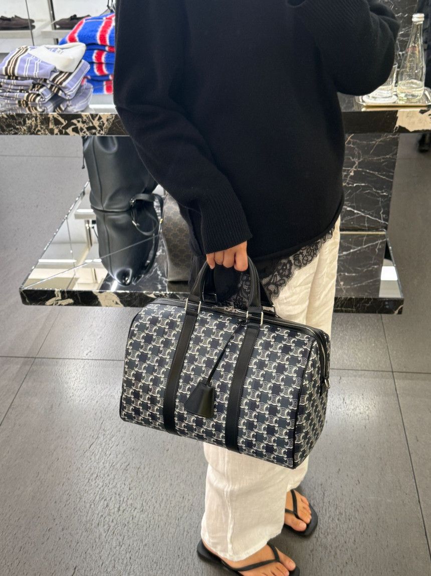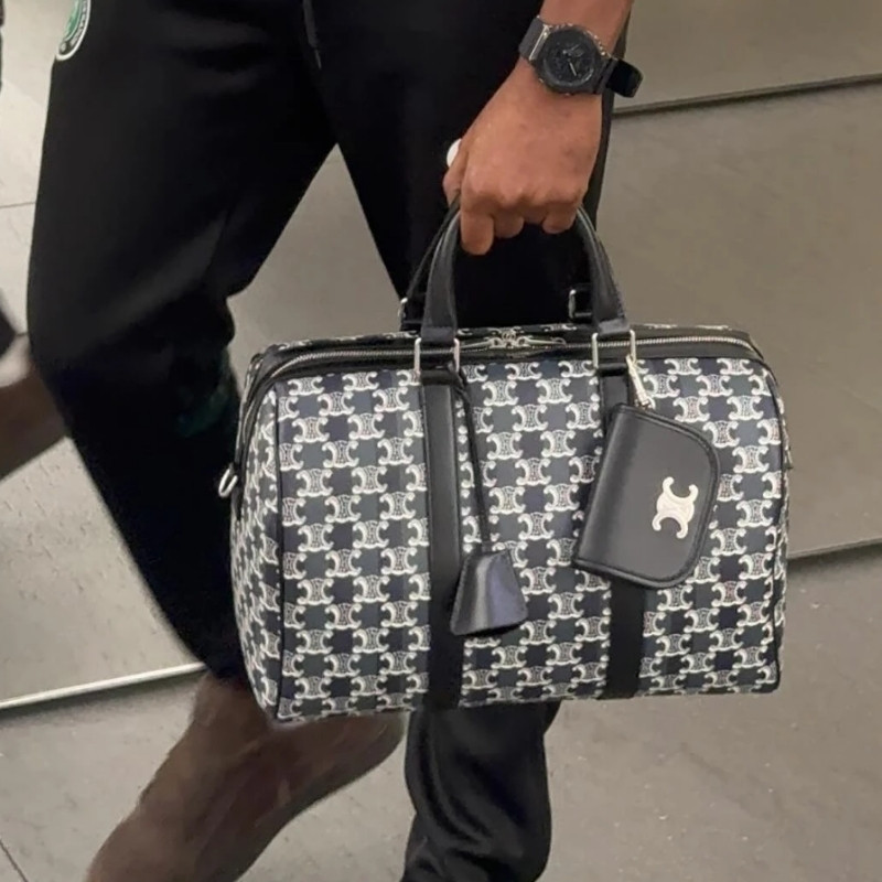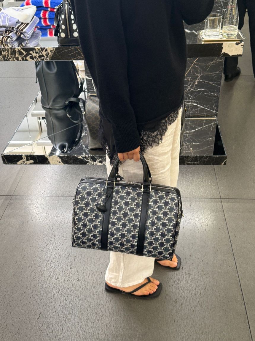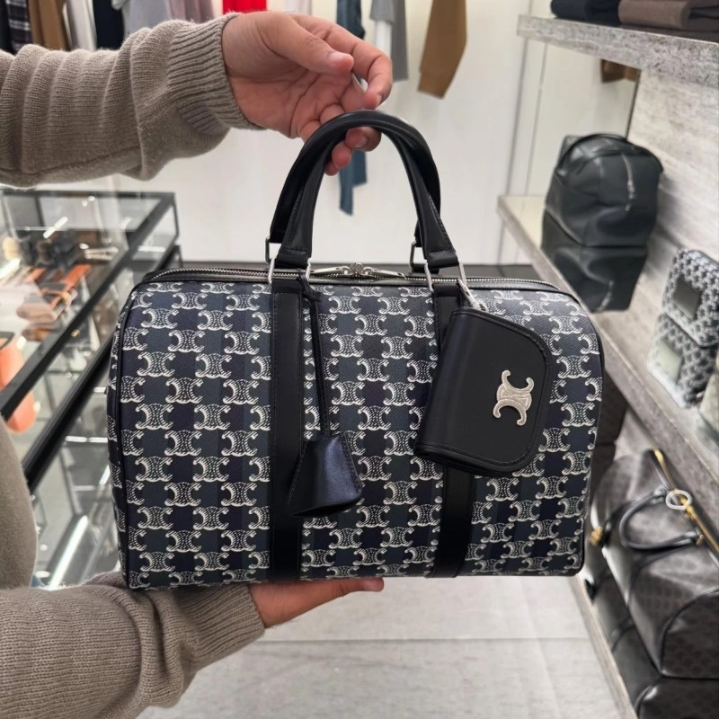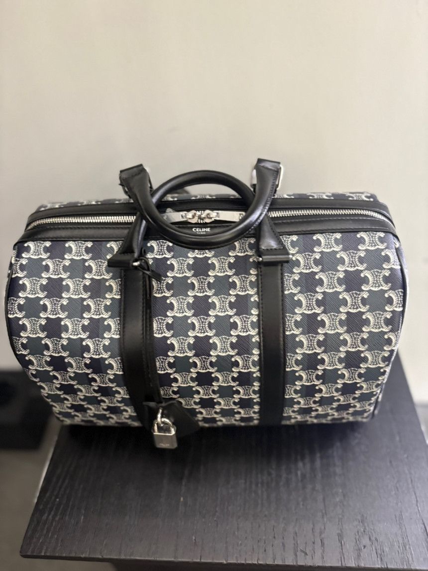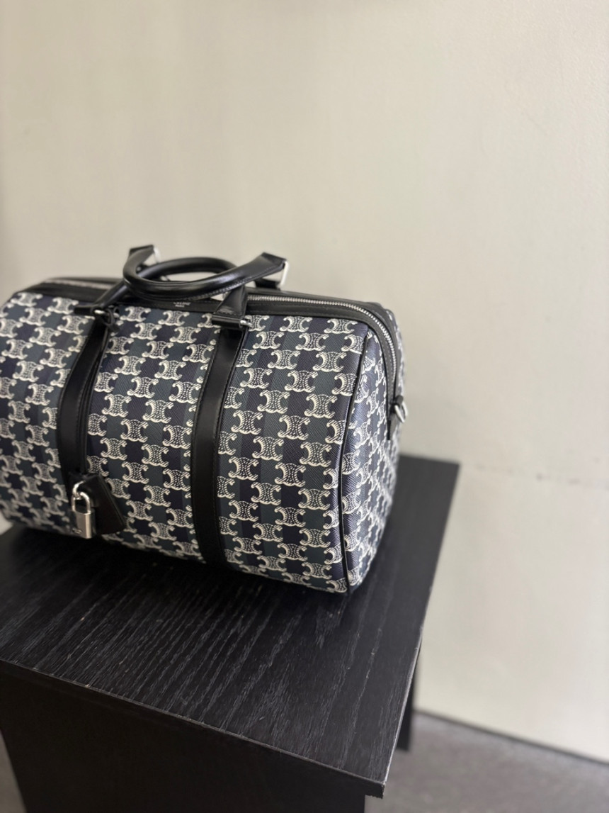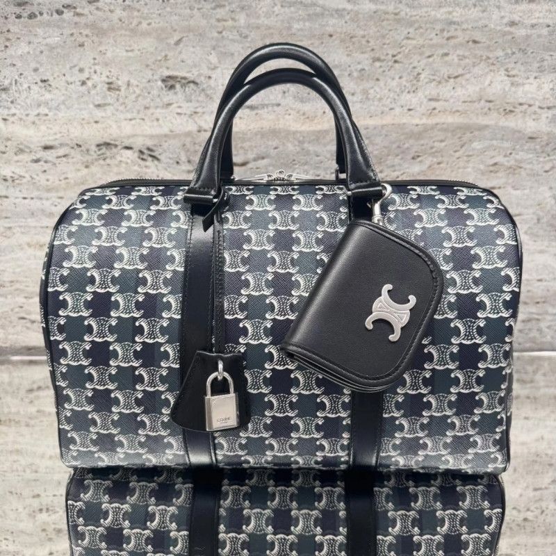 Celine 118552 標誌印花大號波士頓包 黑色/海軍藍