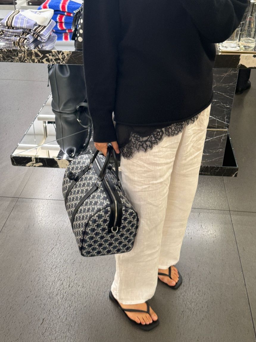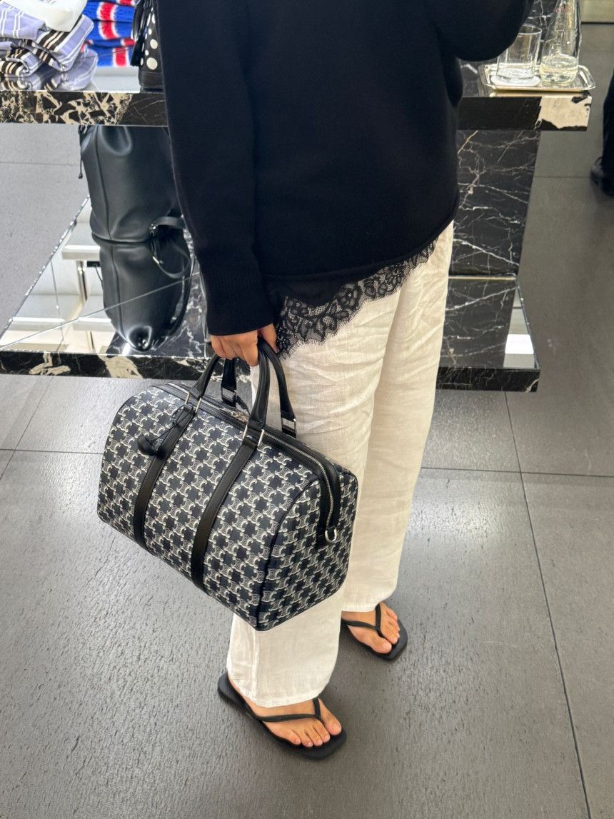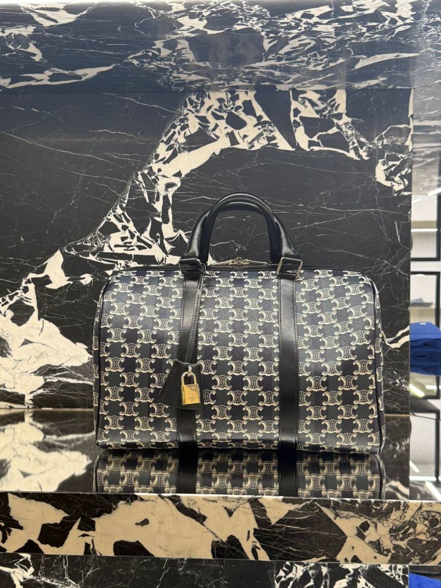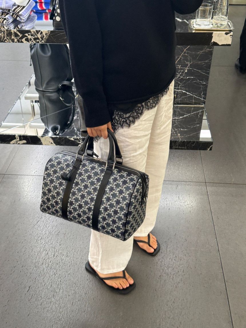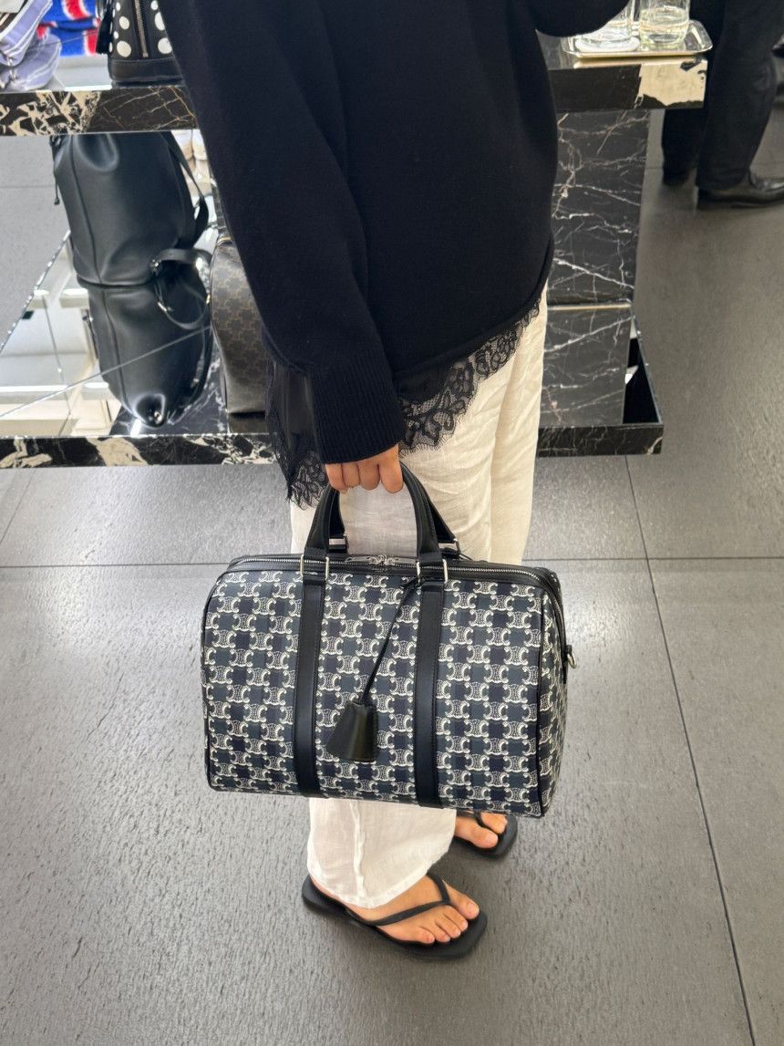 Celine 118552 標誌印花大號波士頓包 黑色/海軍藍