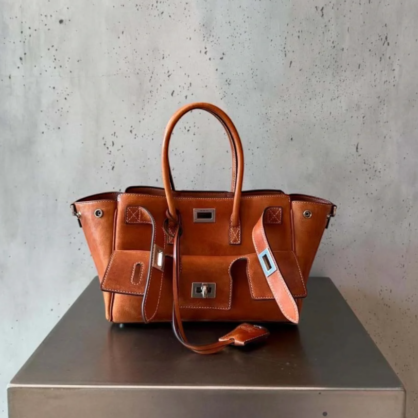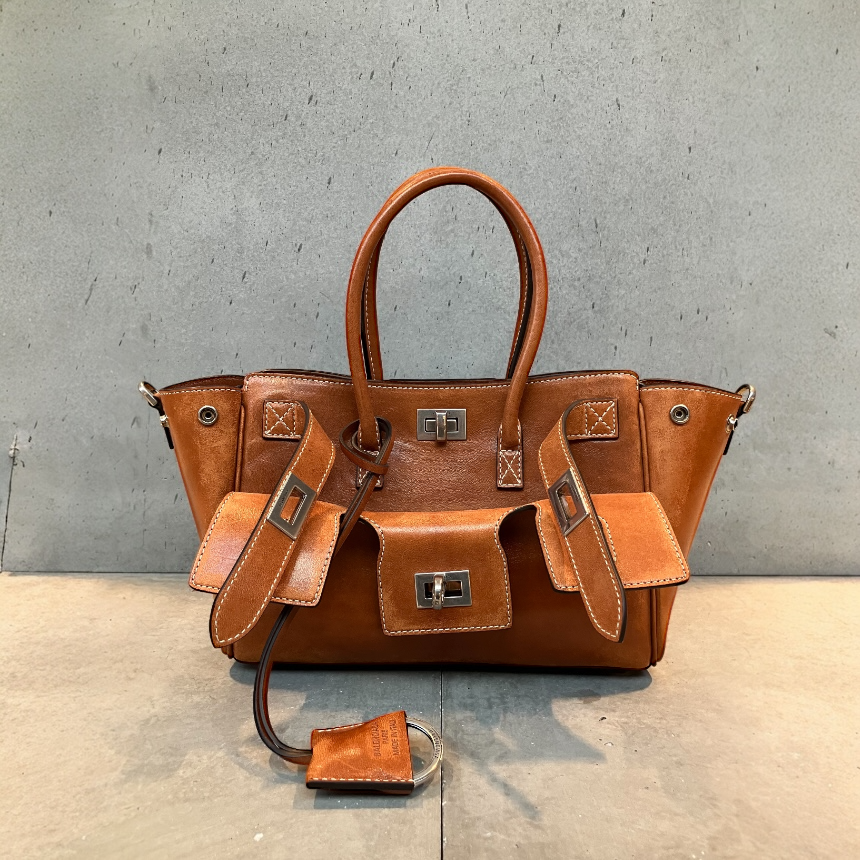 Balenciaga 835732 Bel Air Carry All Mini 植物鞣小羊皮包 牛仔棕