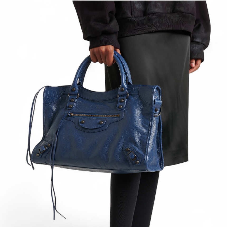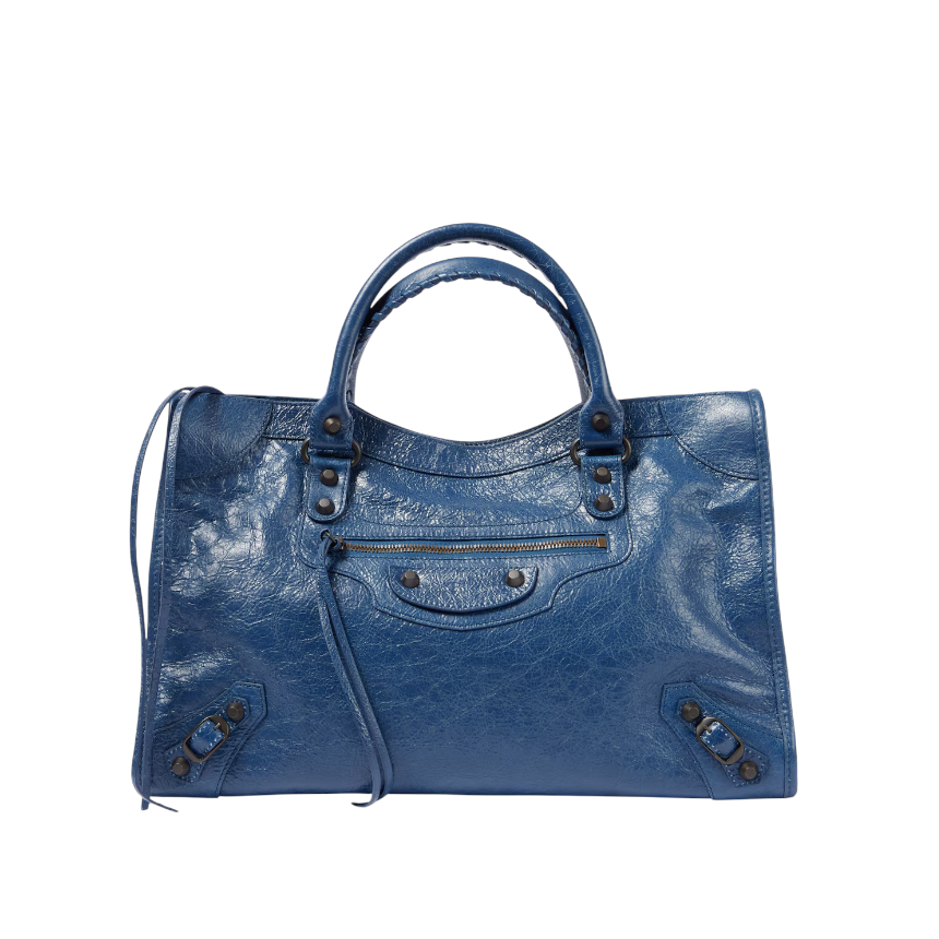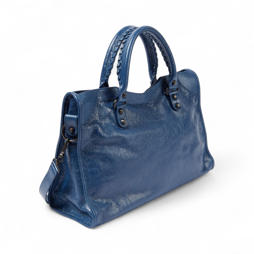 Balenciaga 823058 Le City 小羊皮中款機車包 礦物藍色