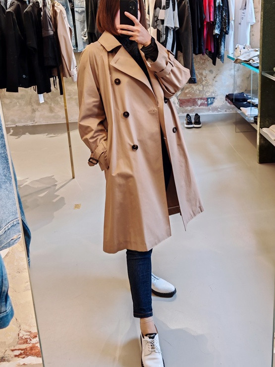 Max Mara The Cube Trench Midi in Twill Antigoccia 採用防潑水棉質斜紋布打造, 展現義大利精緻剪裁工藝。 中長版雙排扣設計融合經典與現代風格, 適合日常與正式穿搭,完美演繹品牌優雅質感。 |