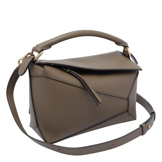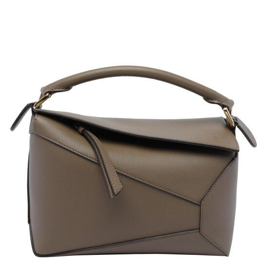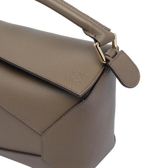 Loewe 柔軟粒面小牛皮小型 Puzzle Edge 包 太妃灰褐色