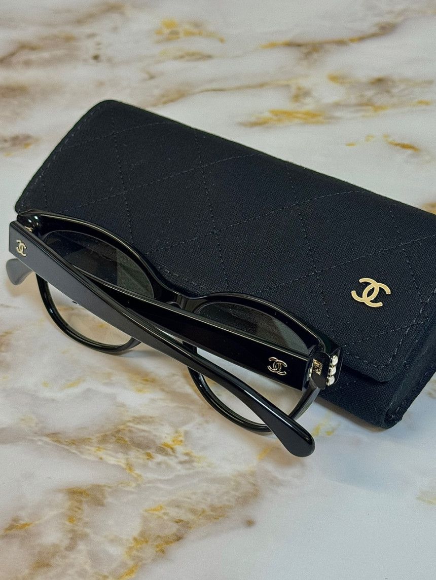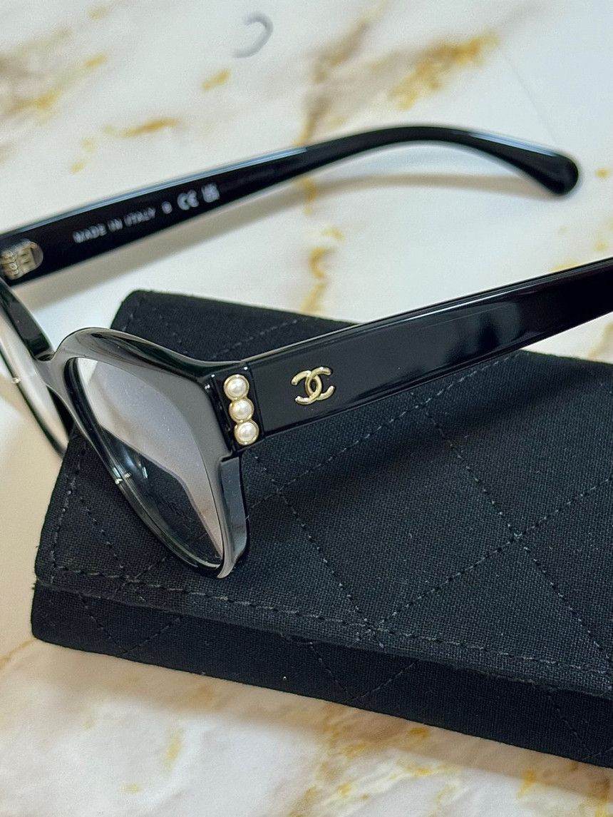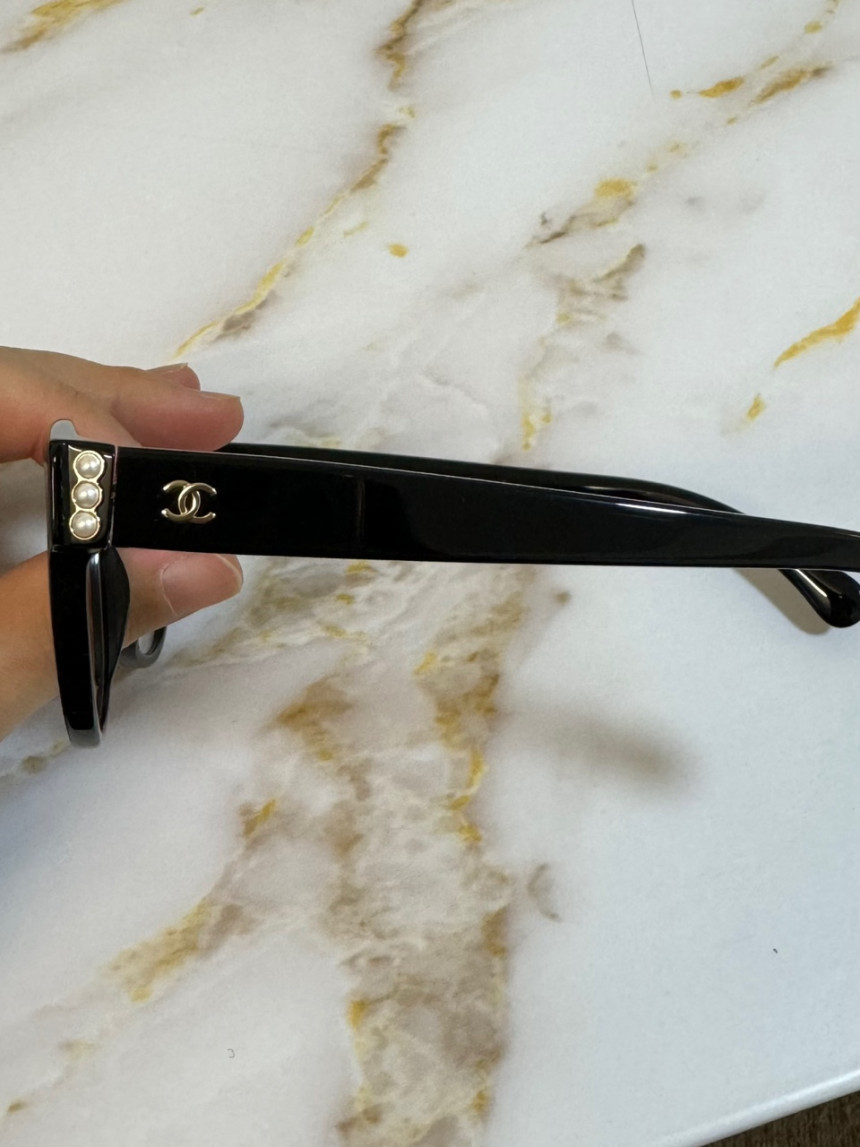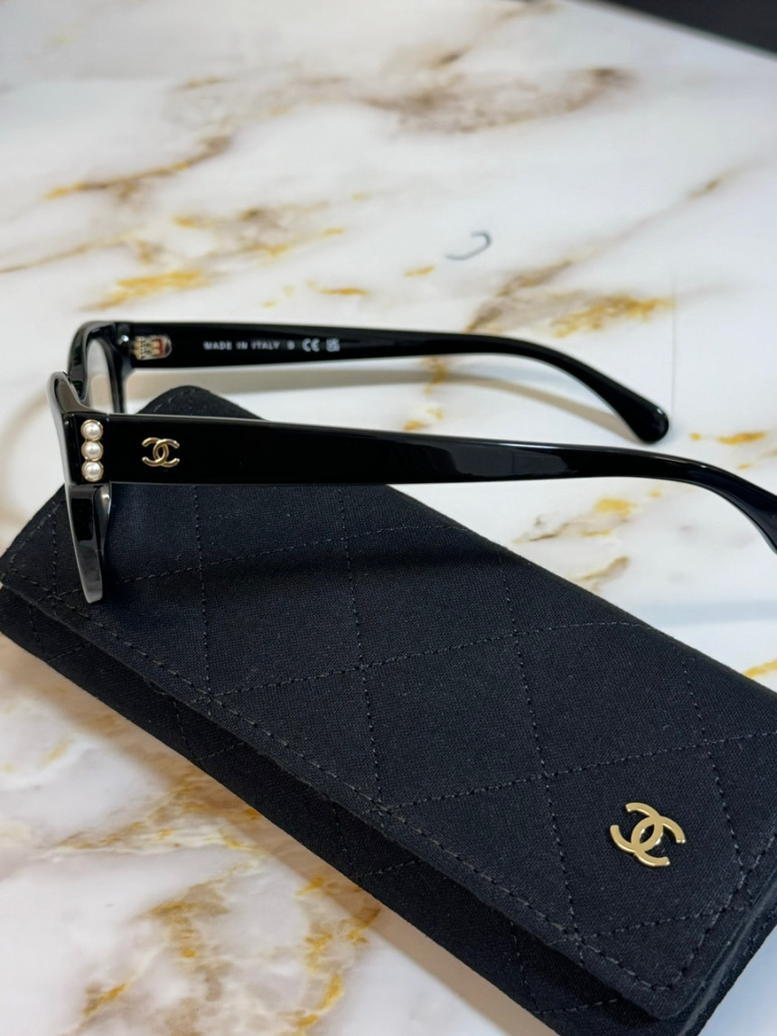 Chanel 3440H Butterfly 珍珠裝飾平光眼鏡鏡框 黑金/珍珠飾邊