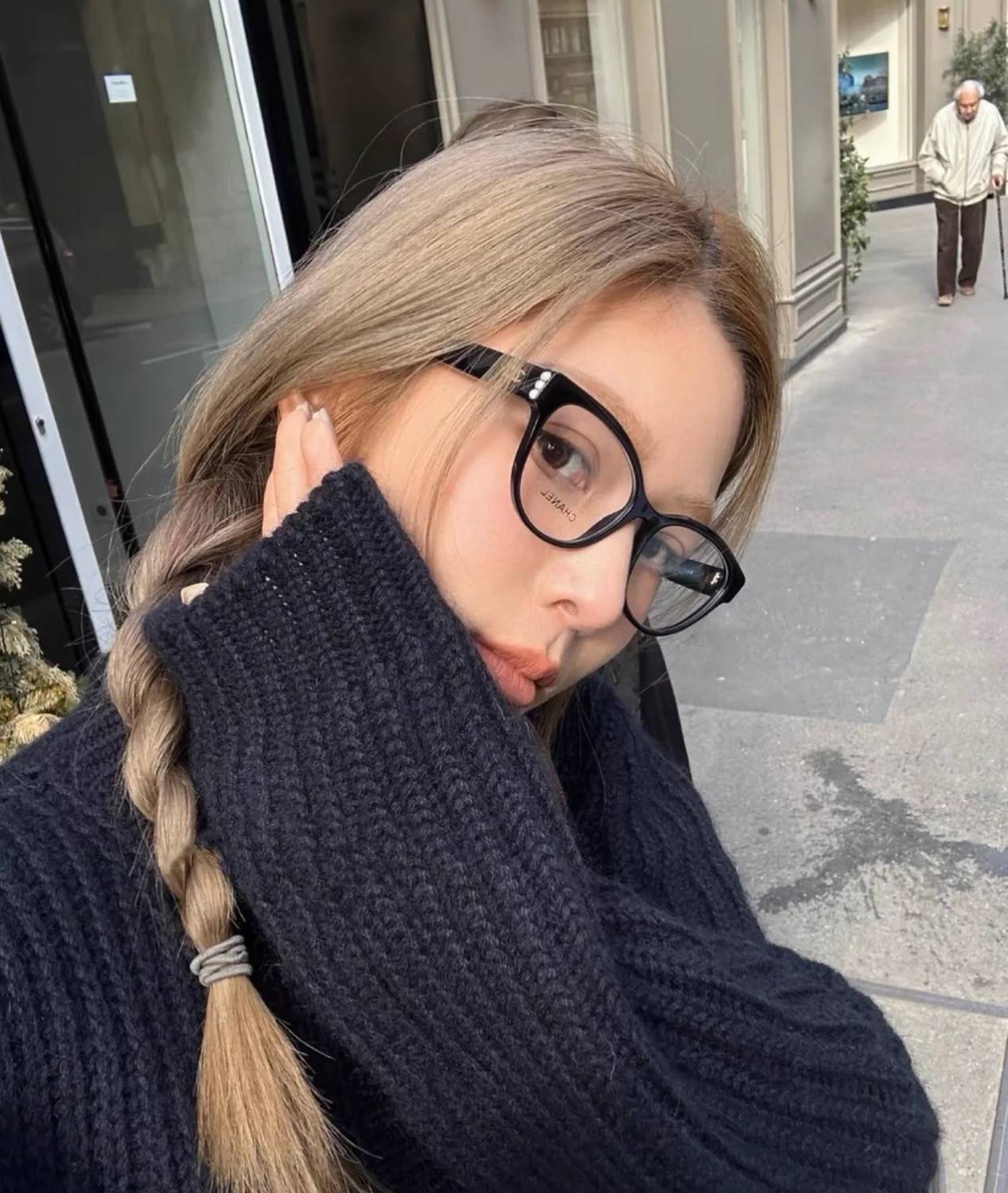 採用黑色亮面鏡框搭配金色金屬細節, |