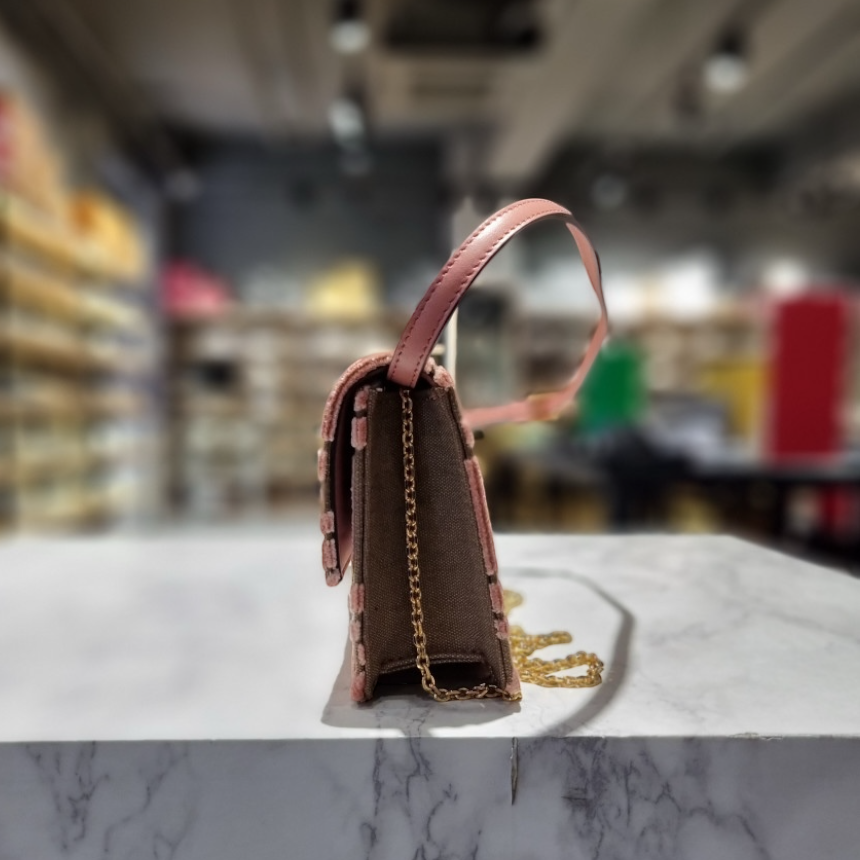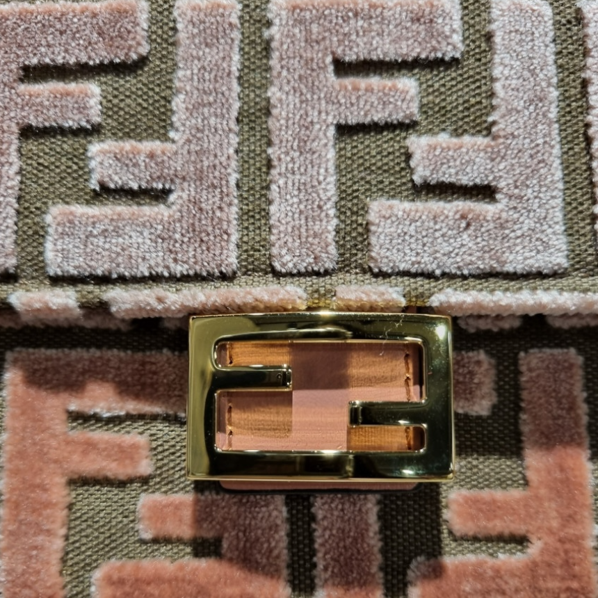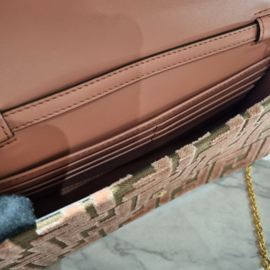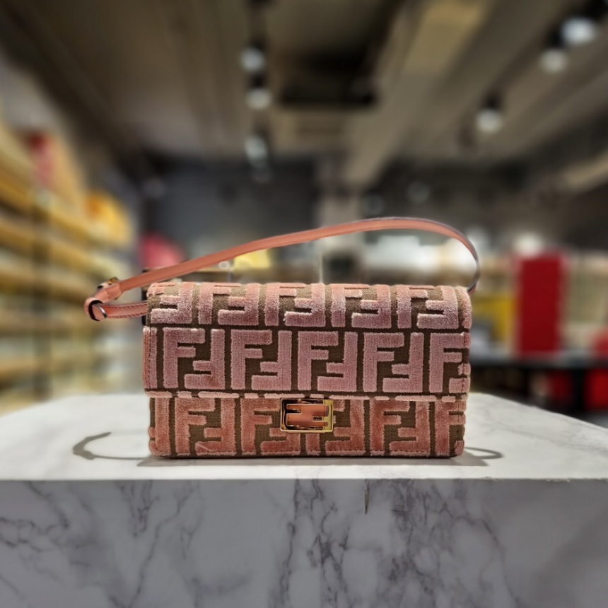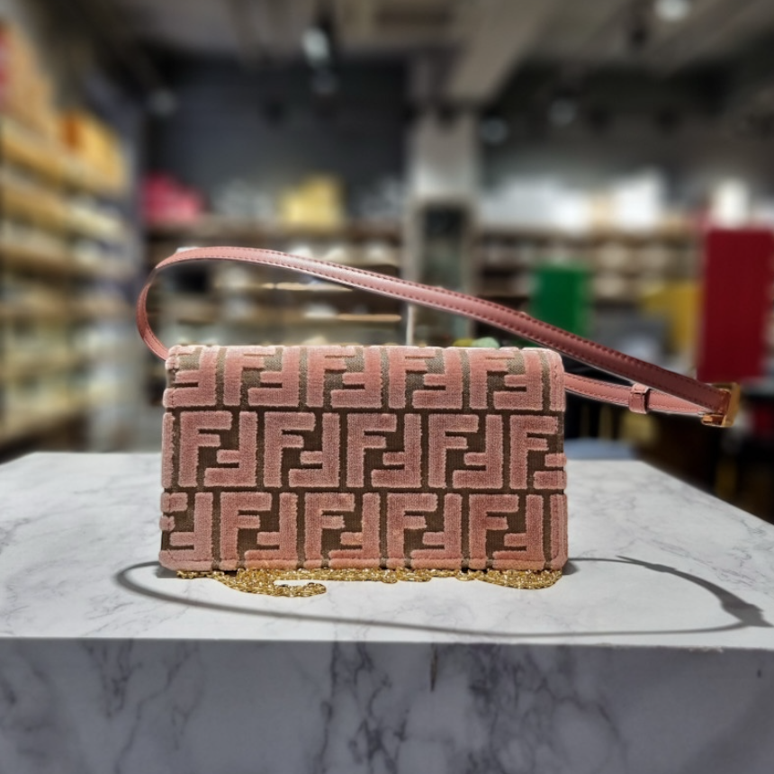 Fendi 8M0498 FF 緹花絲絨貝貴 WOC 鏈帶皮夾 粉紅色