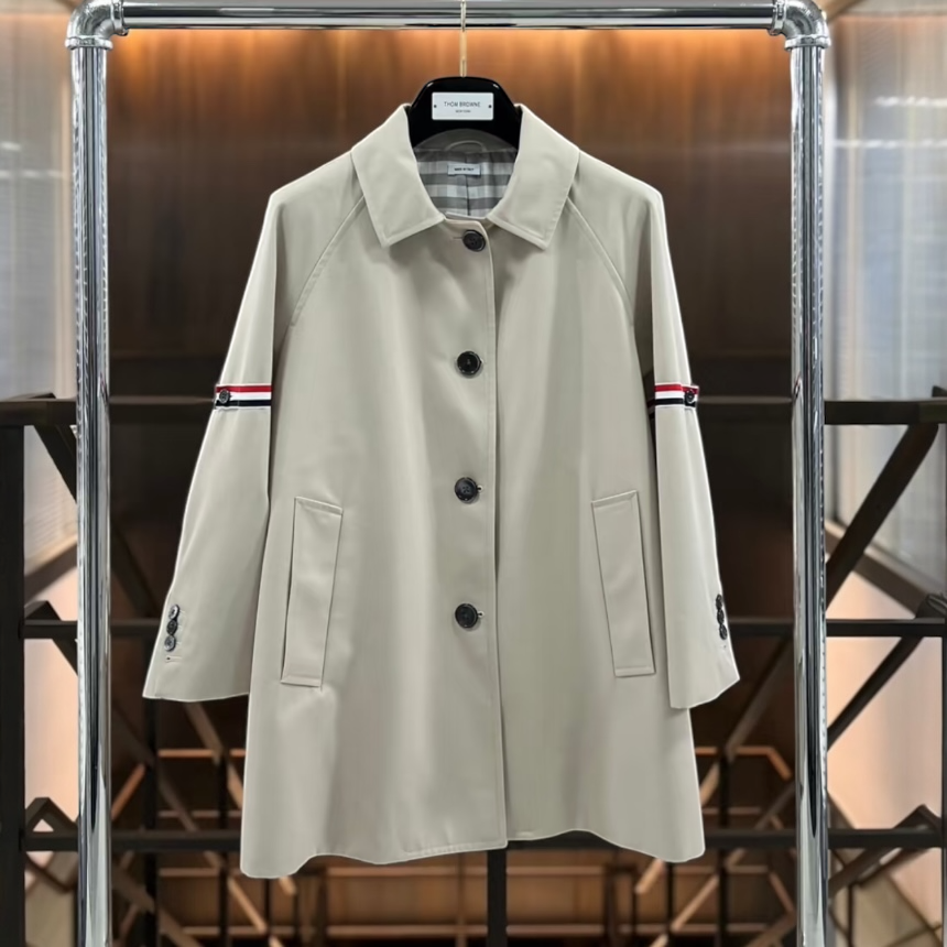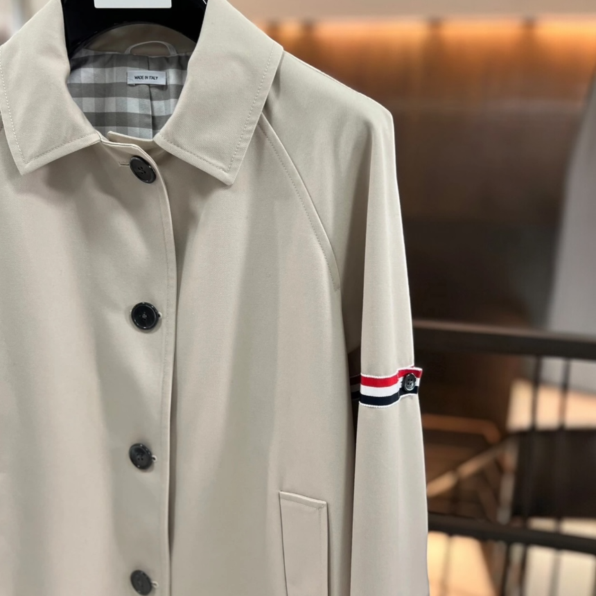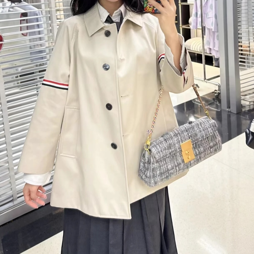 Thom Browne 女款防潑水卡其色斜紋棉布短版風衣外套 IT40S/42M