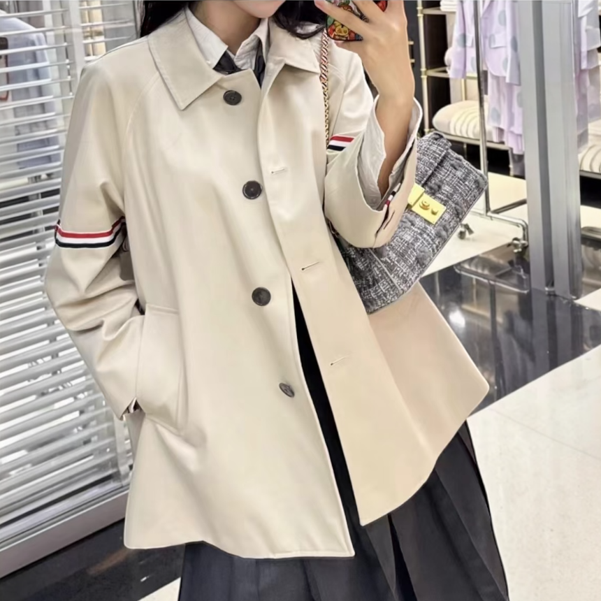 Thom Browne 女款防潑水卡其色斜紋棉布短版風衣外套