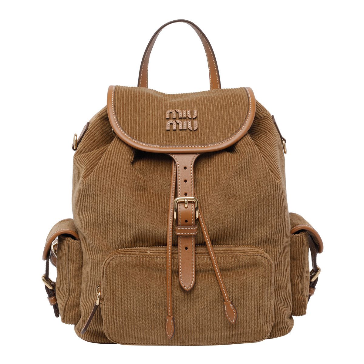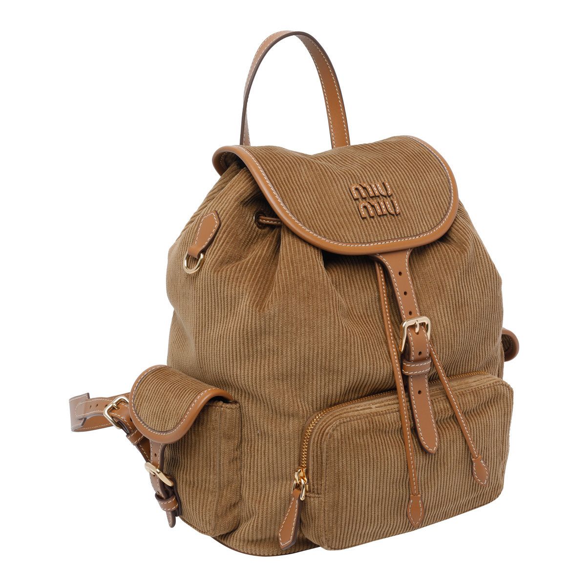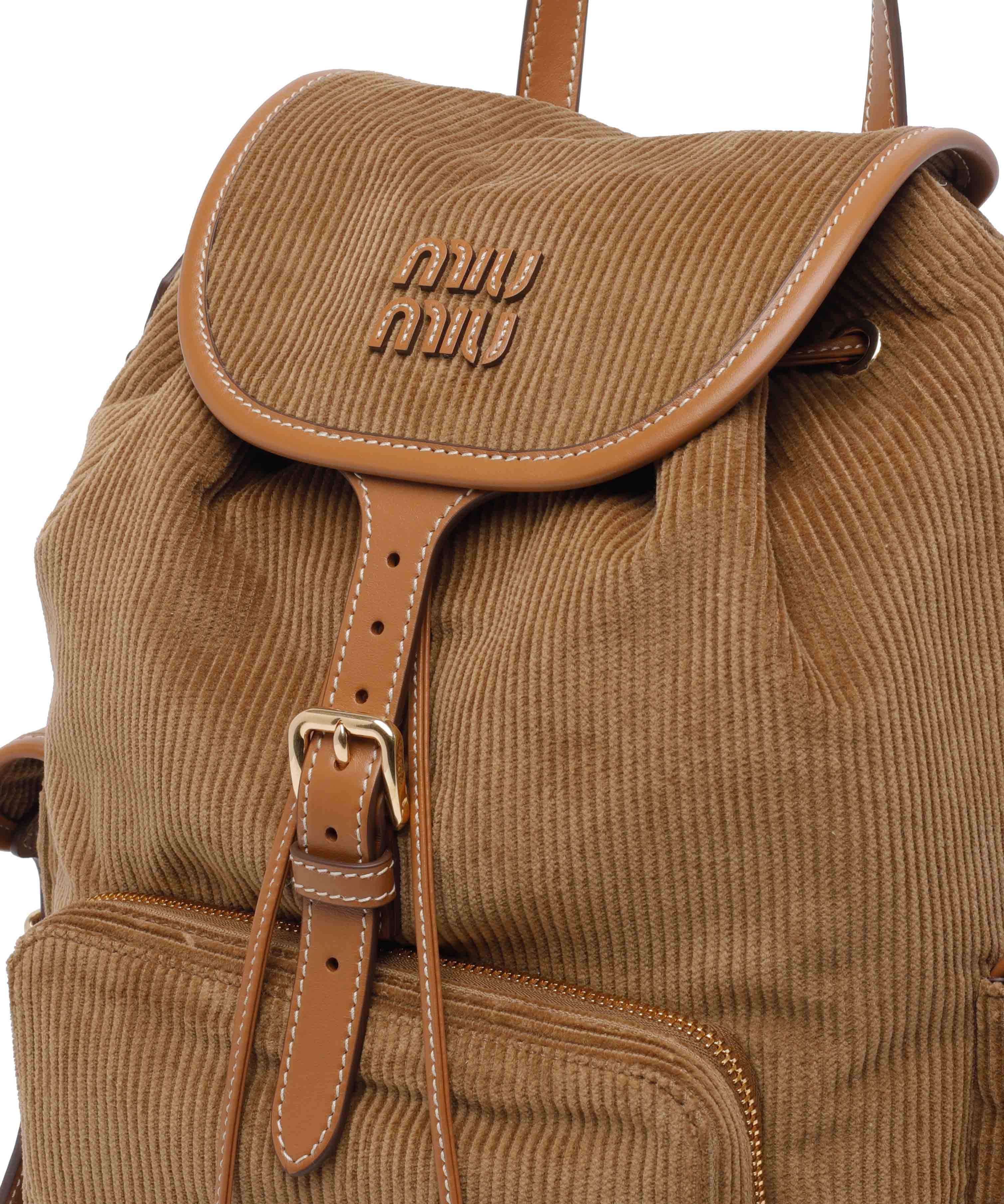 Miu Miu 5BZ042 燈芯絨皮革拼接後背包 棕啡色
