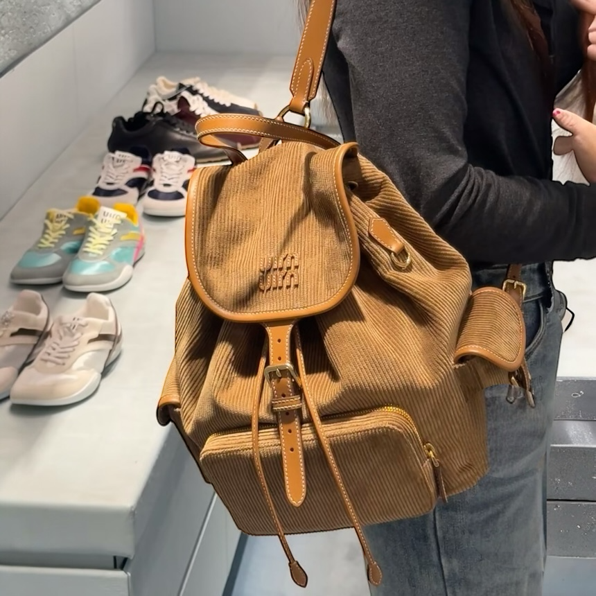 Miu Miu 5BZ042 燈芯絨皮革拼接後背包