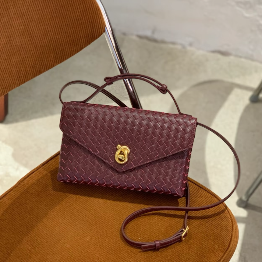 Bottega veneta 817191 Knot Lock 信封手提斜背包 巴羅洛酒紅