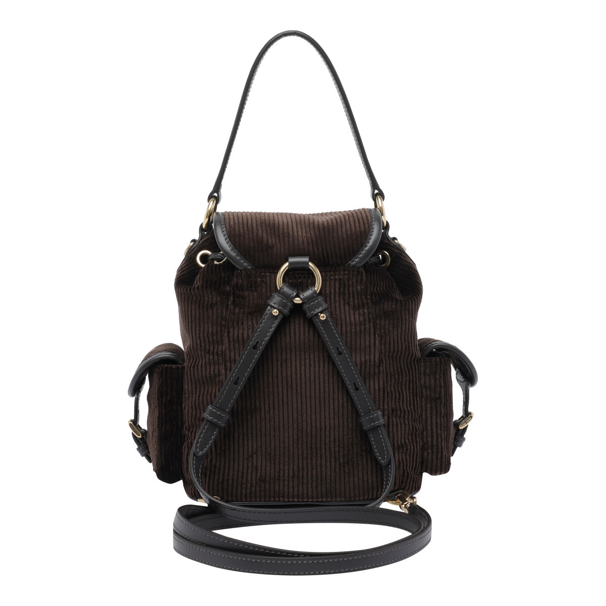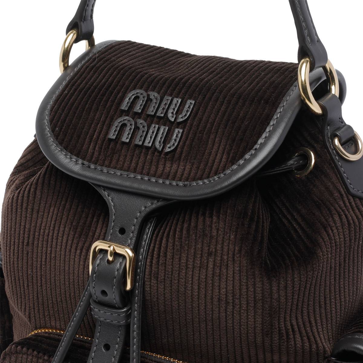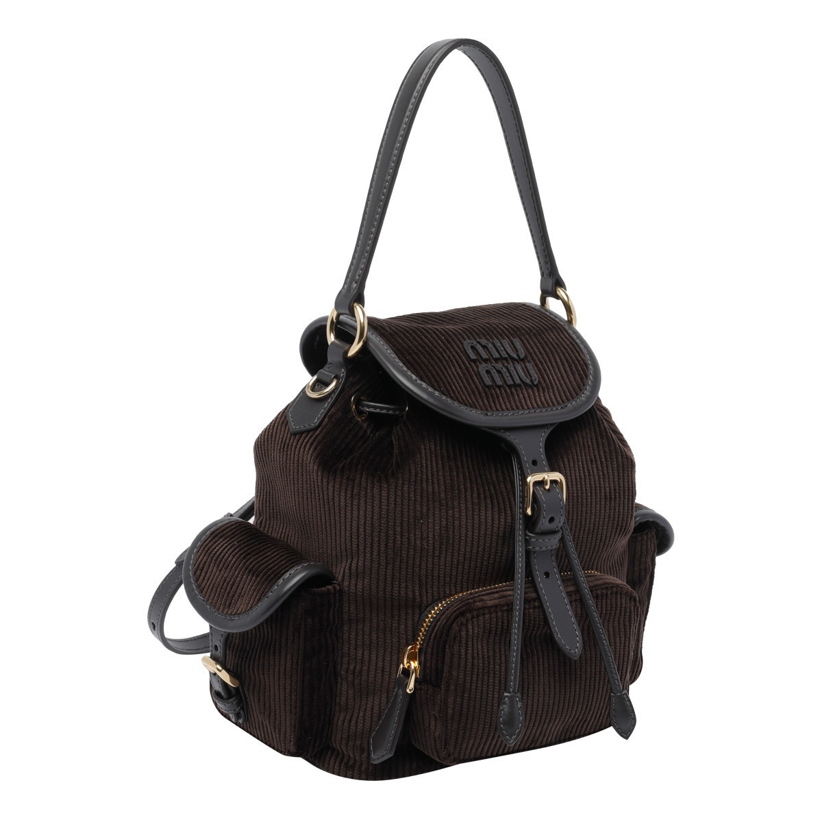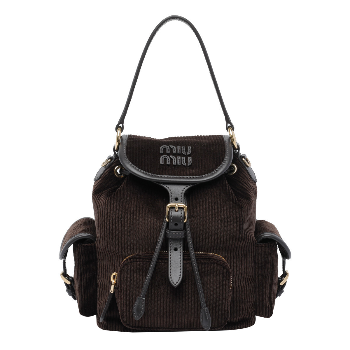 Miu Miu 5BZ043 中款燈芯絨皮革拼接後背包 黑檀色