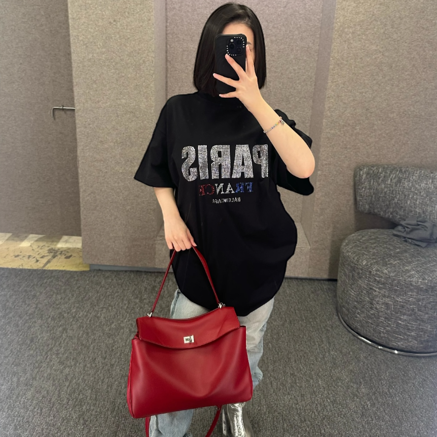 Balenciaga 789772 柔滑小牛皮中款 Rodeo 包 紅色/復古銀釦